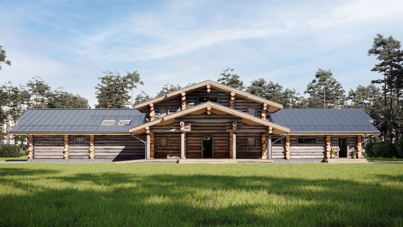 Основная идея проекта: создать место для семьи, где, на контрасте с городским бетоном и суетой стало возможным пребывать в гармонии, восстанавливать силы. Для этого было решено спроектировать единый комплекс жилого дома и русской бани.