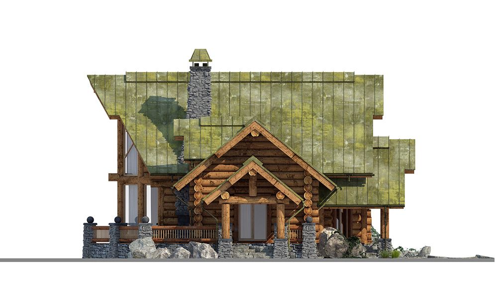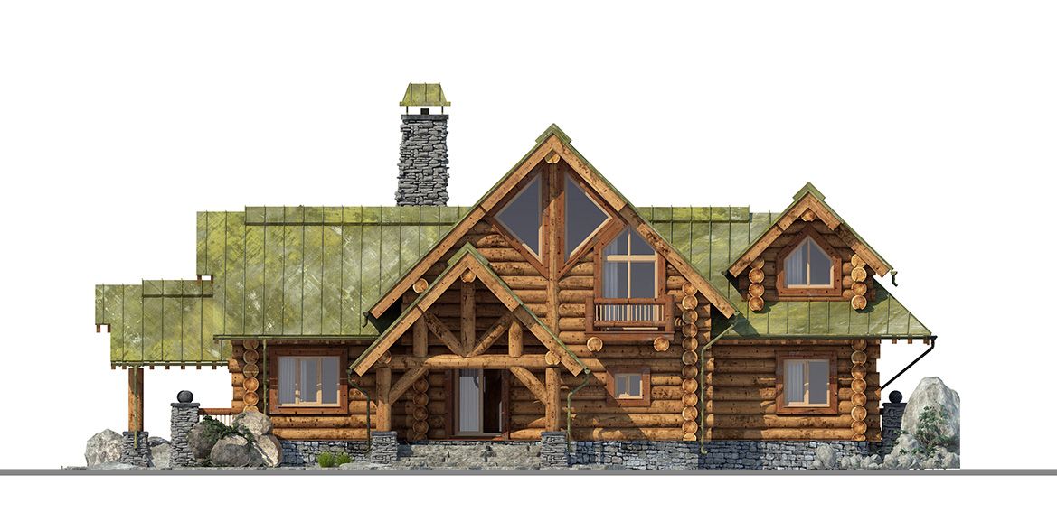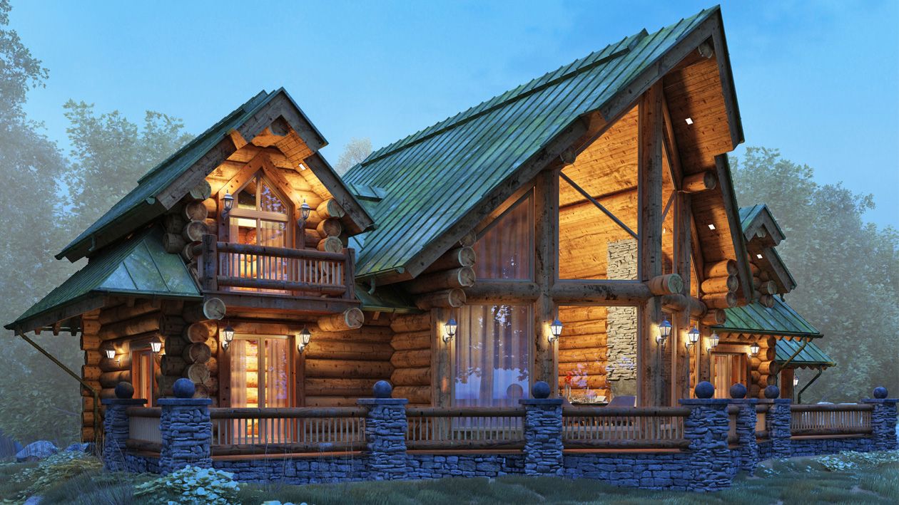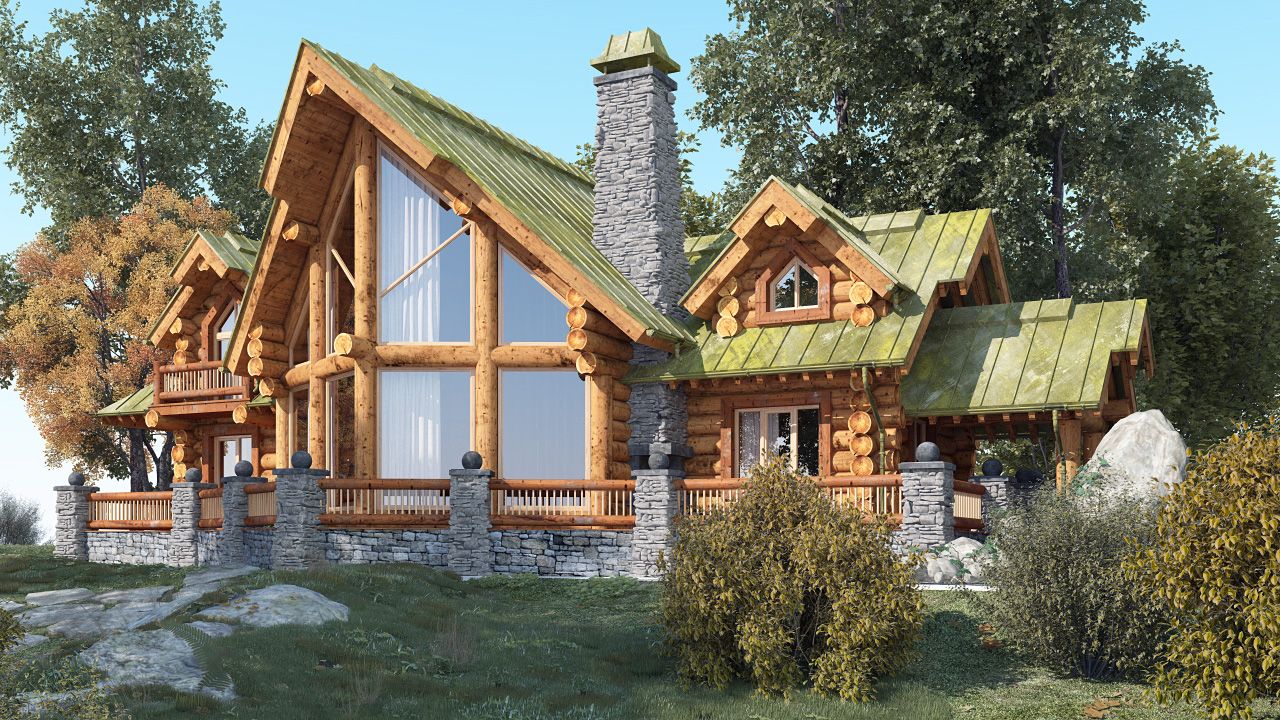 Состаренная фальцевая кровля создает ощущение древности дома, словно потерявшегося где-то в лесу.