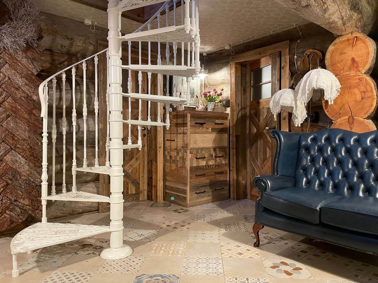 Дополнительным украшением интерьера являются авторские двери ручной работы, выполненные из амбарной доски и доски Кело.