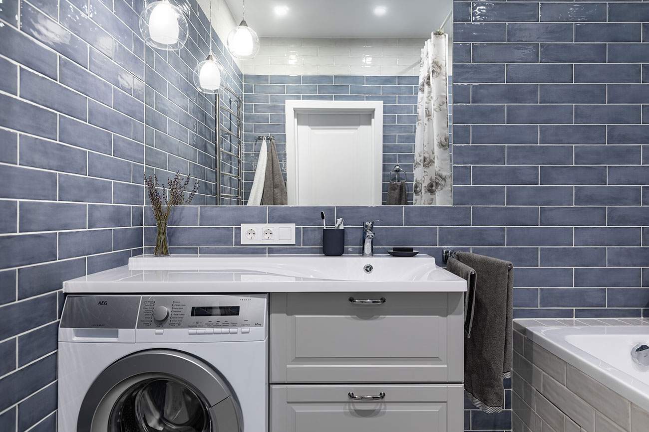 Ванная комната и санузел поддерживают цветовые решения квартиры.