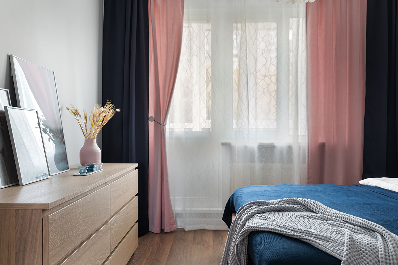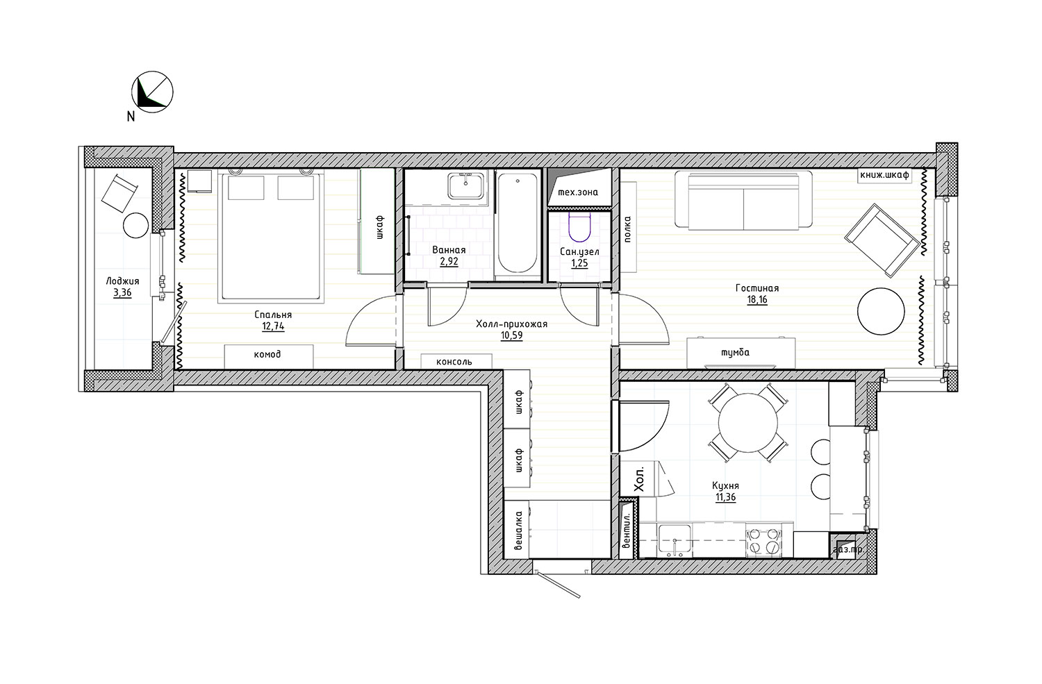 Панельный дом внес свои ограничения в возможность перепланировки, но в целом неплохая планировка от застройщика и ориентация квартиры по сторонам света позволили выполнить хорошее зонирование: отдельная кухня, гостиная комната, спальня, раздельные ванная комната и санузел.
