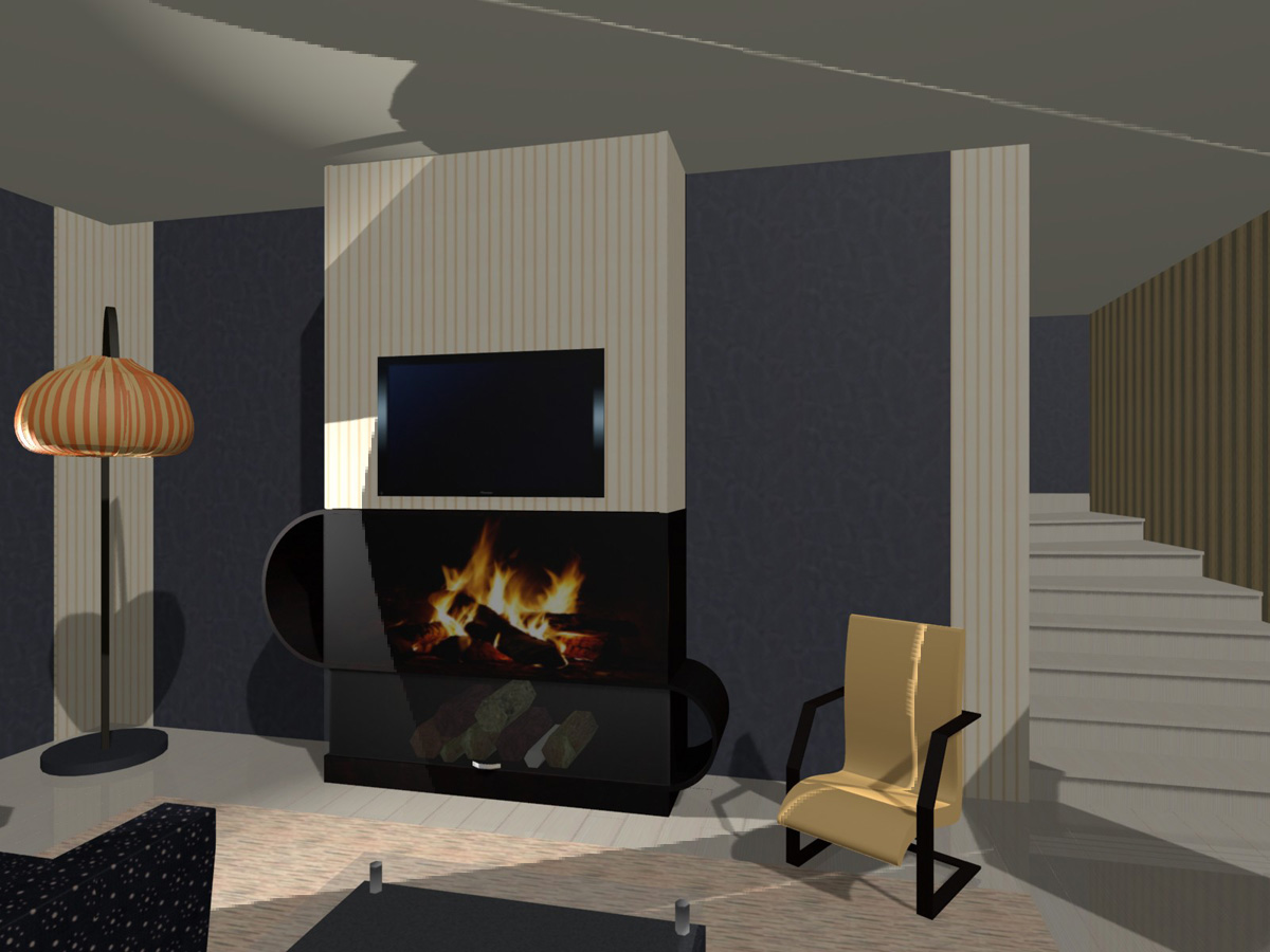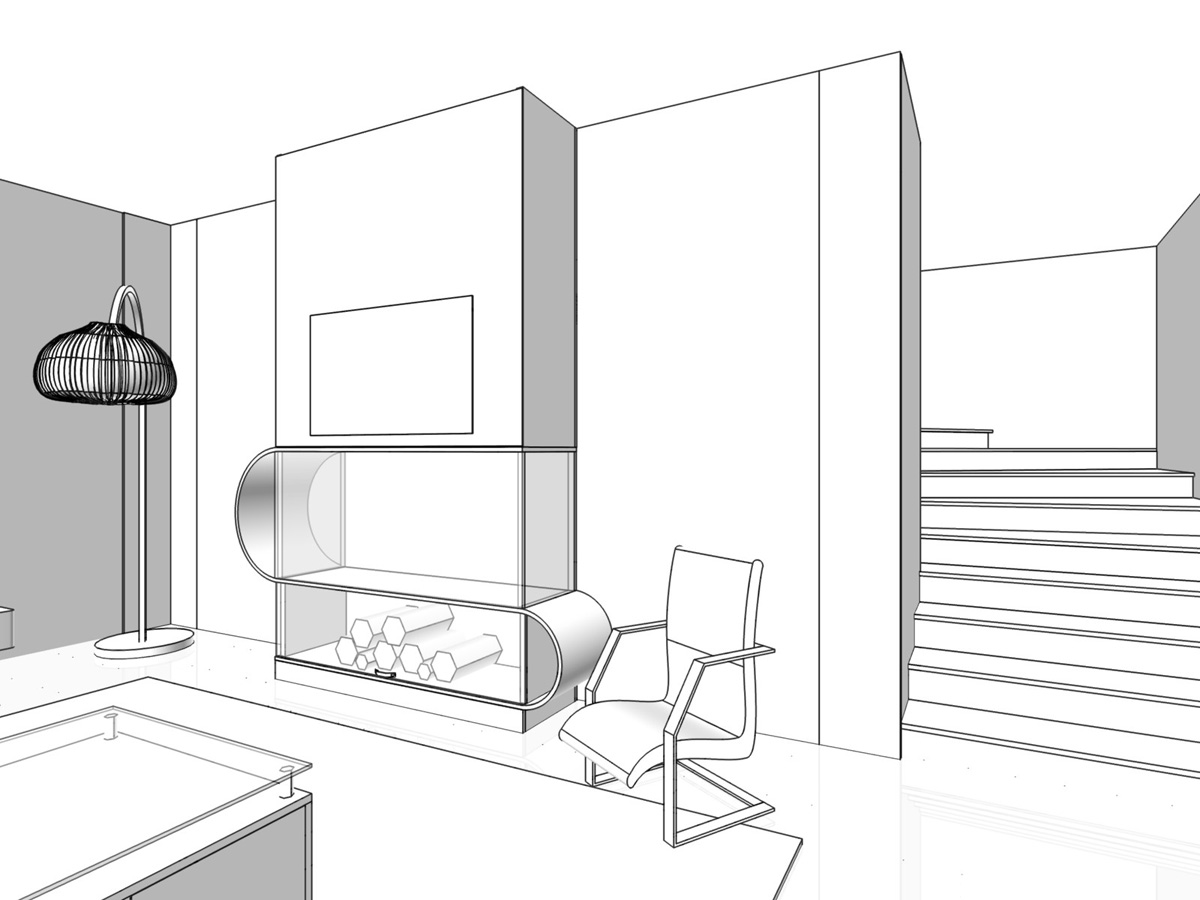 Проект электрокамина в стиле хай-тек запланирован для любого типа помещений (загородный дом, квартира, офисное помещение). Главная идея проекта камина — создание в помещении атмосферы простоты, легкости и непринужденности, а также уюта и дружественного настроения.