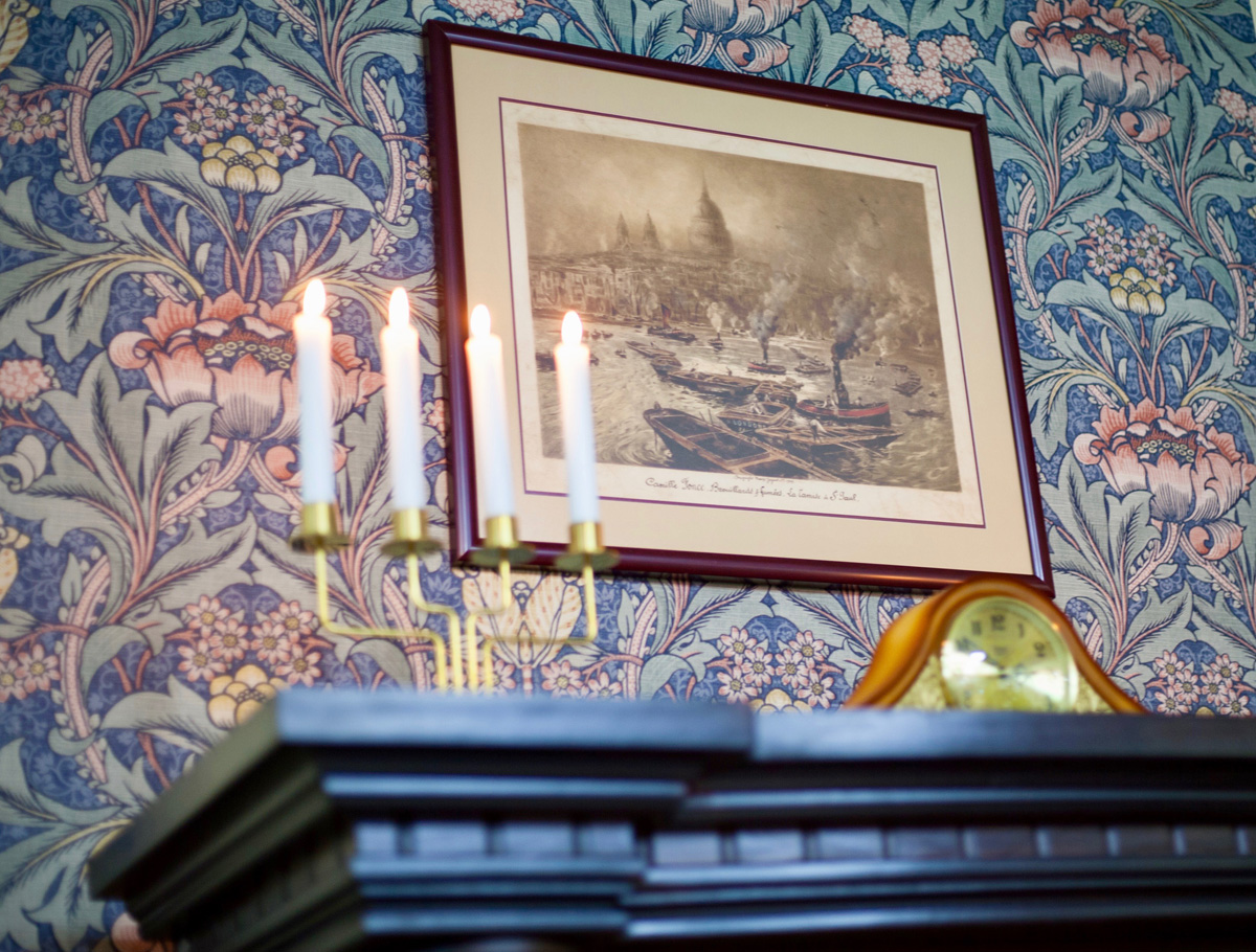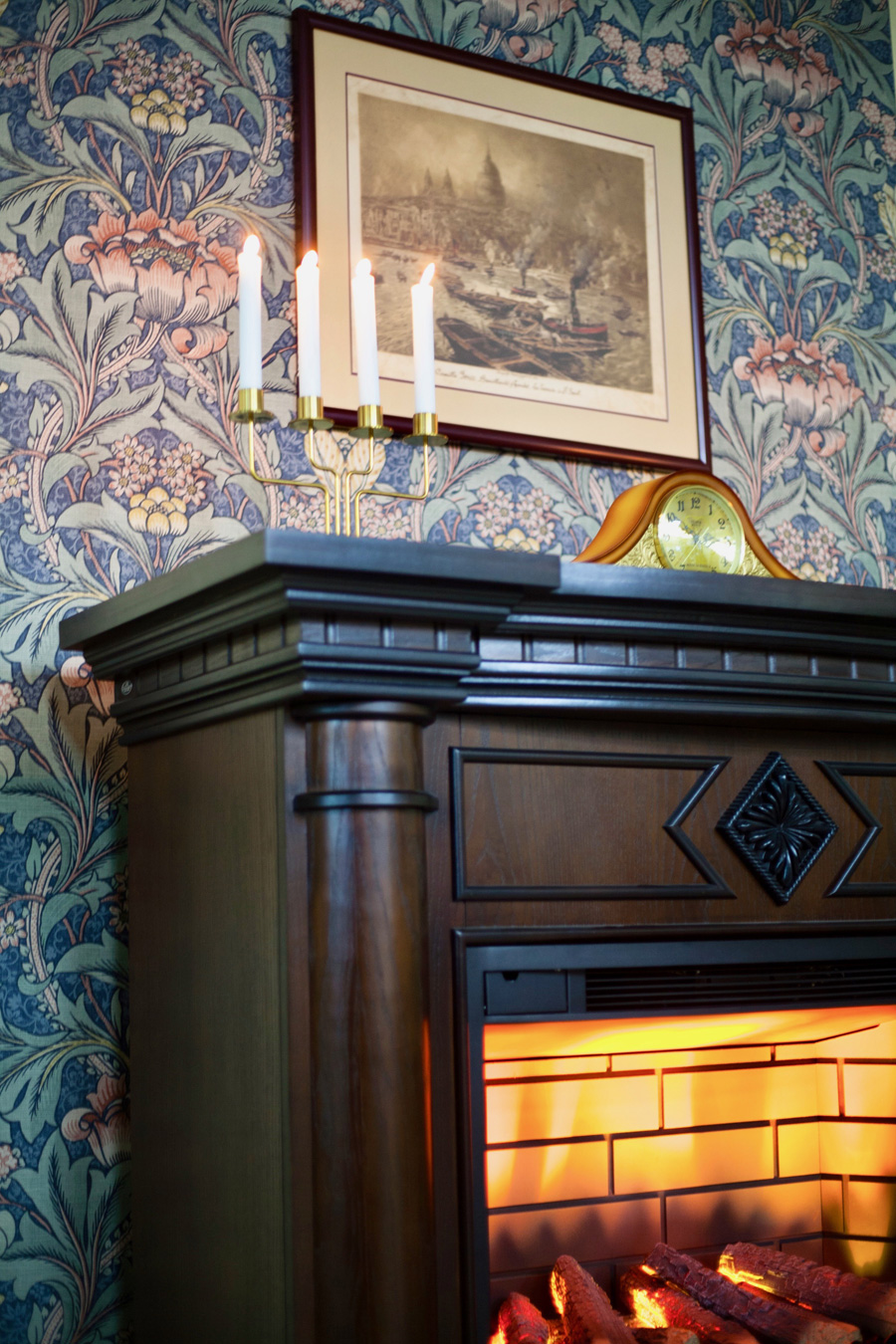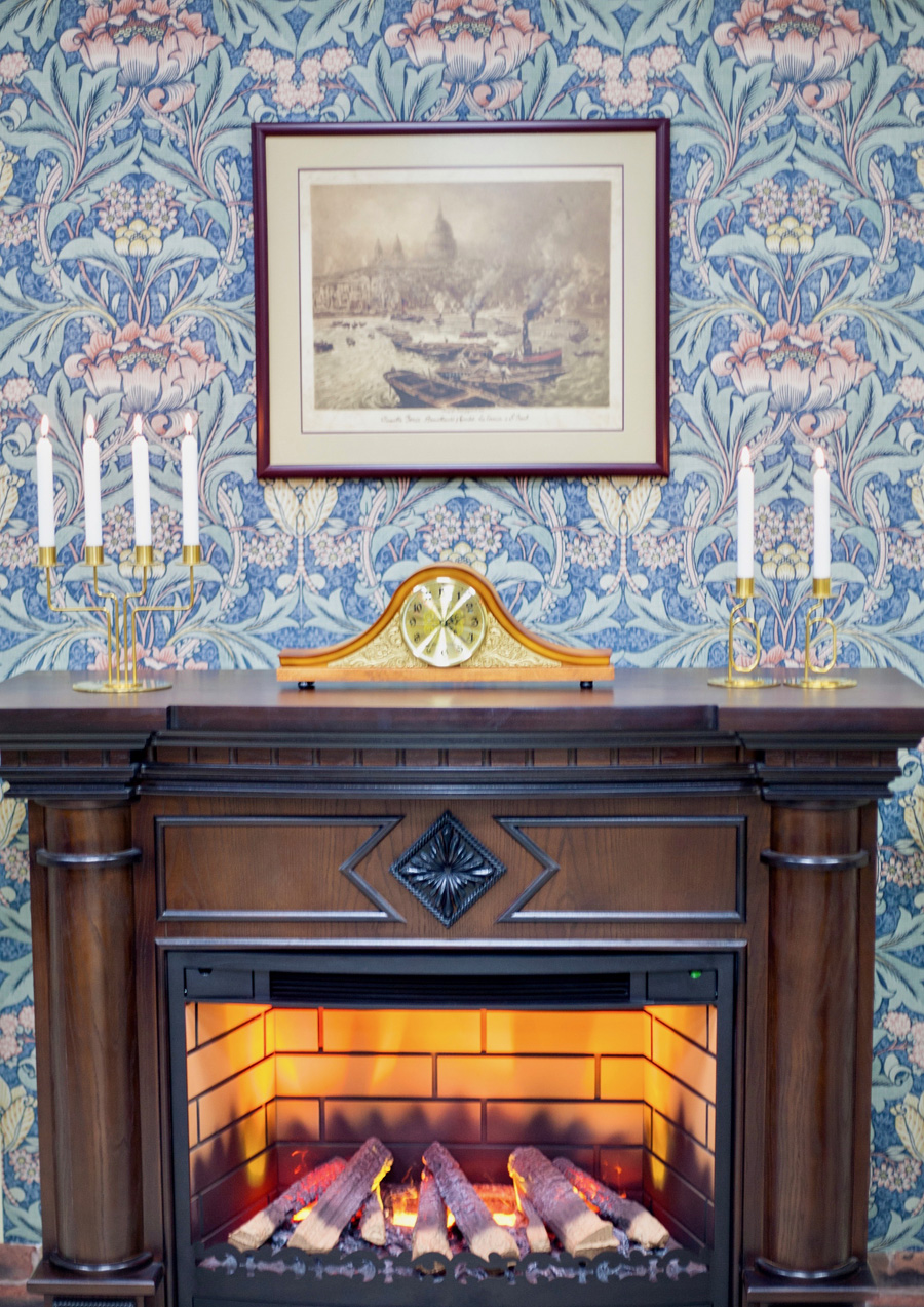 Основным мотивом проекта является английское художественное движение «Arts & Crafts» и его икона — Уильям Моррис. Глубокие природные тона, классические английские обои с лиственным орнаментом, равновесие композиции вызывают ощущения благополучия и погружают в атмосферу английской гостиной викторианской эпохи. Все это поддержано современной палитрой, подчеркнуто модными и доступными элементами декора. В таком интерьере легко представить жизнь современной семьи во всей ее элегантной, но позволительной роскоши.