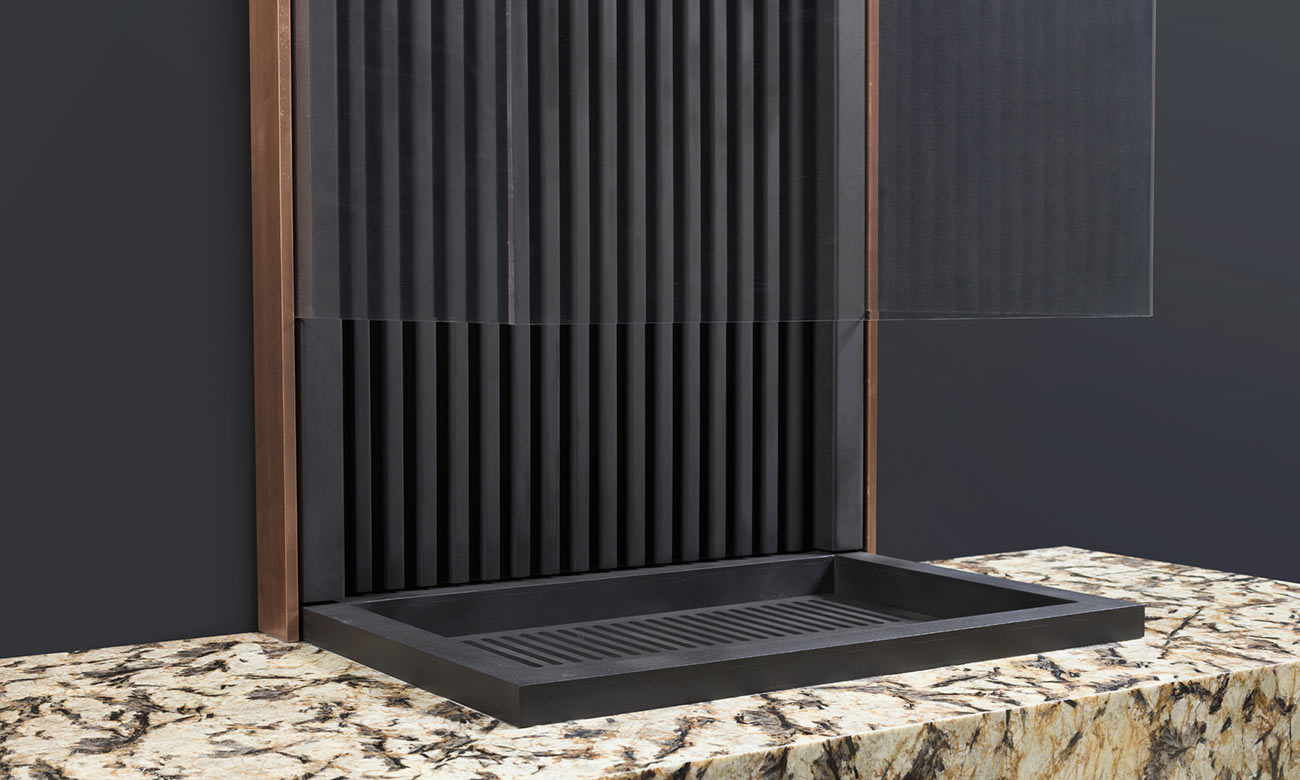 Цветовая палитра гранита Golden Copenhagen напоминает старую географическую карту или рельеф на космическом снимке. При разжигании огня камень будто оживает теплыми отблесками в игре его пламени.
