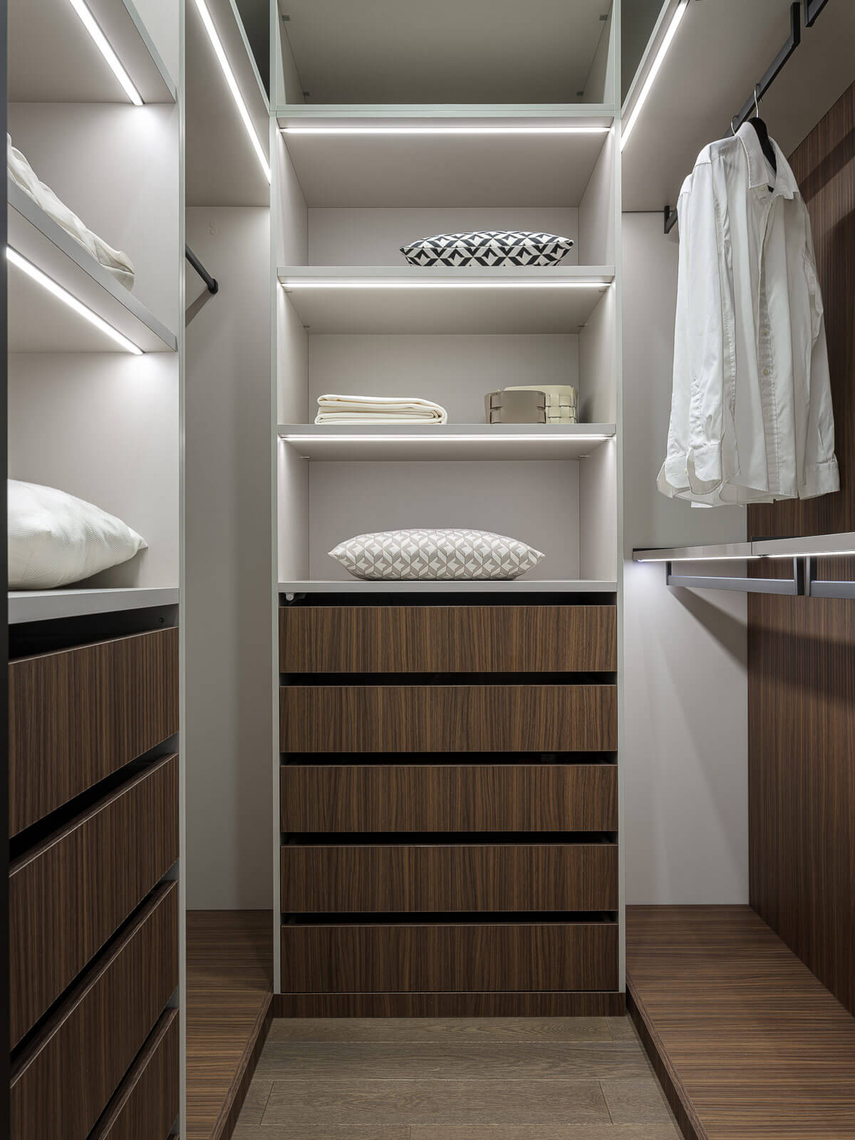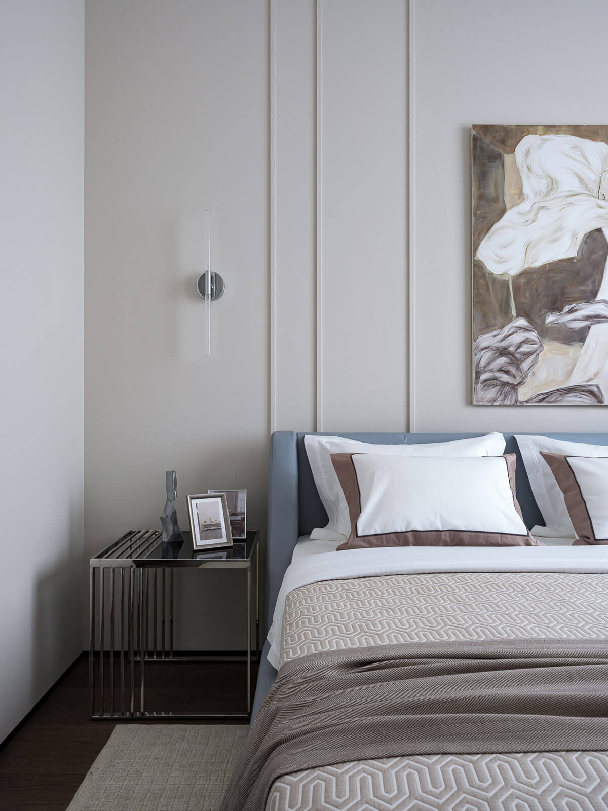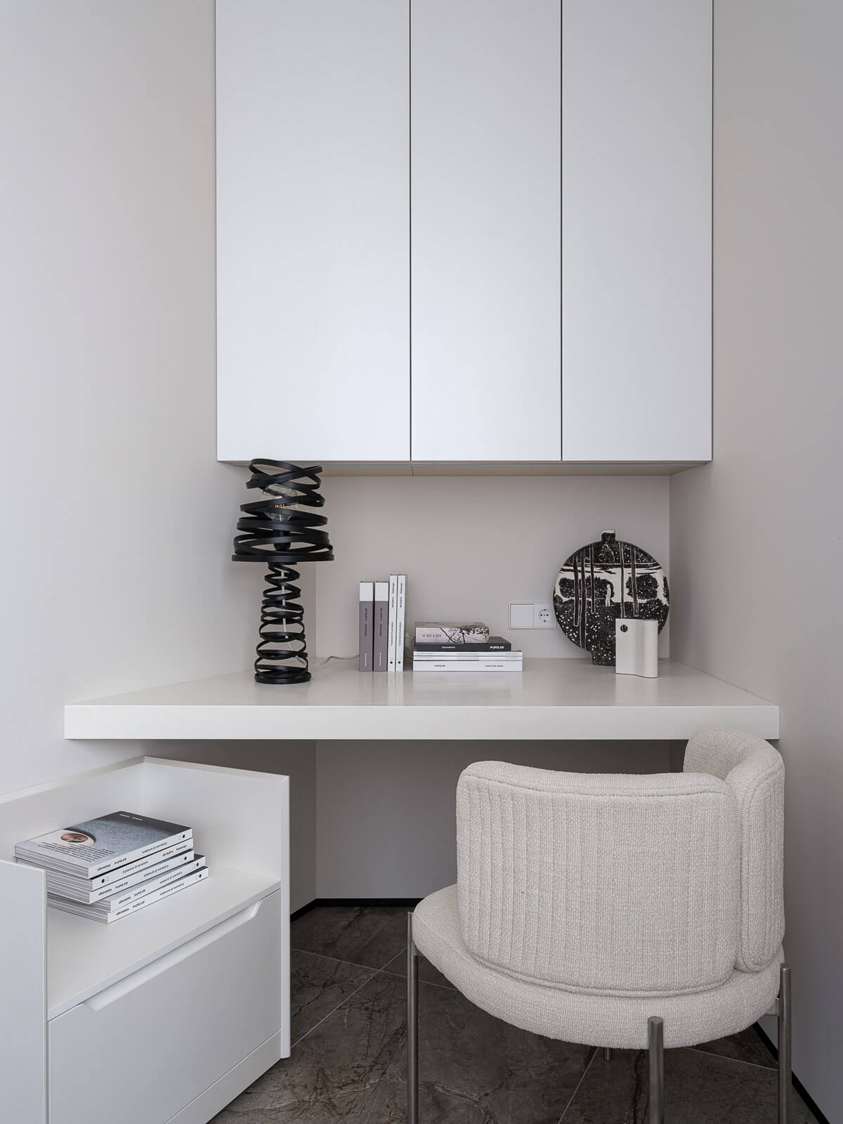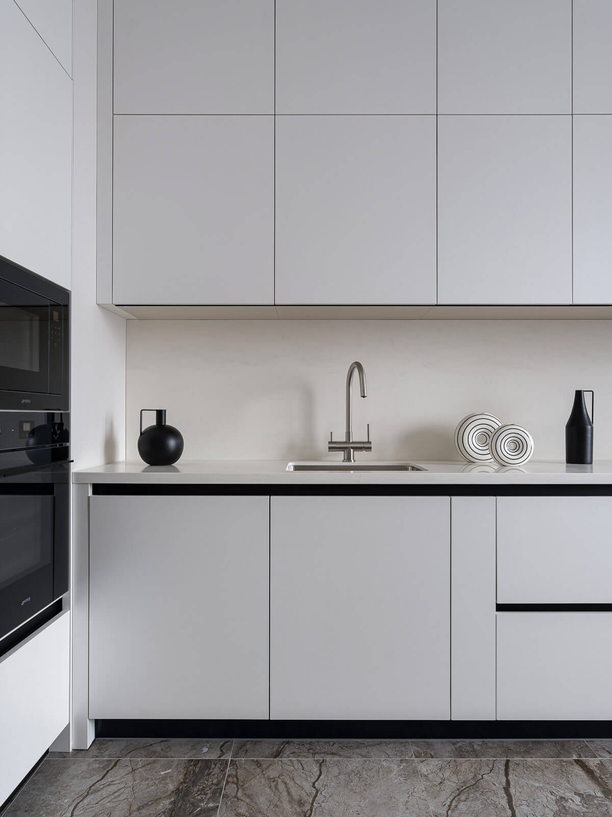 В основе пространства – мягкая, светлая палитра, визуально расширяющая площадь и создающая ощущение воздушности. Полы из итальянского керамогранита и паркета плавно перетекают из одной зоны в другую, объединяя интерьер в единое целое. Лаконичные стены стали идеальным фоном для стильной мебели и акцентных деталей. Тяжелые портьеры заменили легкие текстуры, пропускающие максимум естественного света. Качественные предметы мебели и дизайнерские светильники – преимущественно европейских брендов – придают пространству изысканность без излишней вычурности.