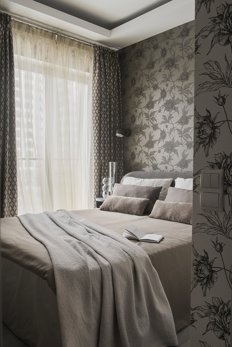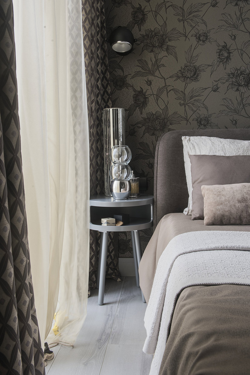 В детской и спальне основной тон задают домашние «пледовые» обои и бабушкины розочки. Но все выдержанно в прозрачной серо-пыльной гамме.