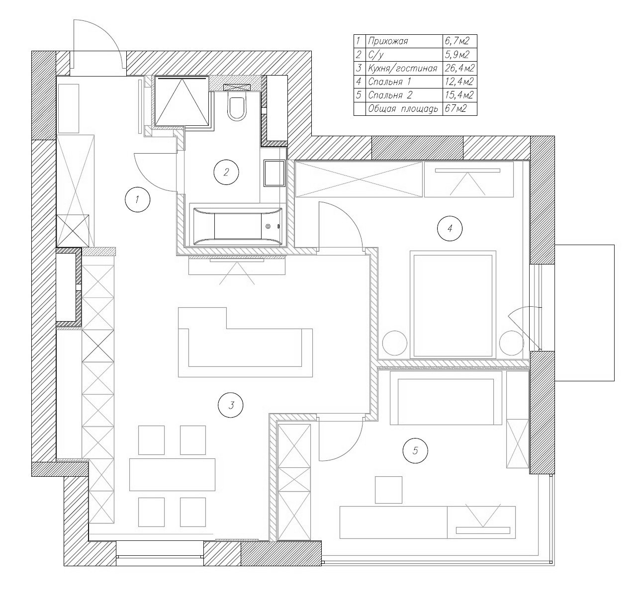 Небольшая квартира 67 м² для небольшой семьи. Цель проекта — минимальными средствами, в щадящем режиме к бюджету, достичь теплоты домашнего очага. Выбор пал на бюджетных российских производителей.