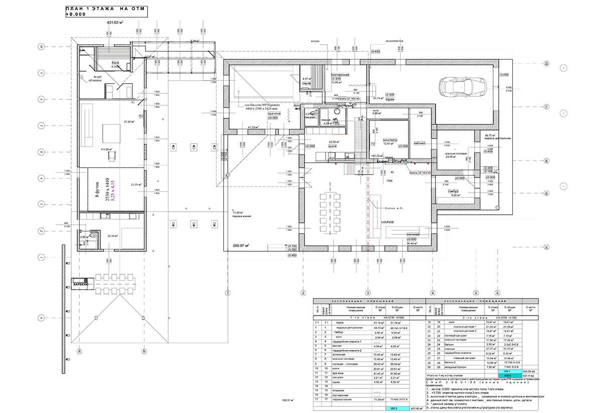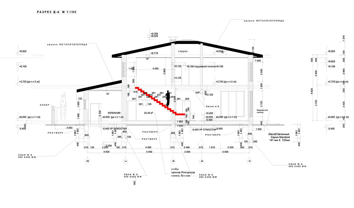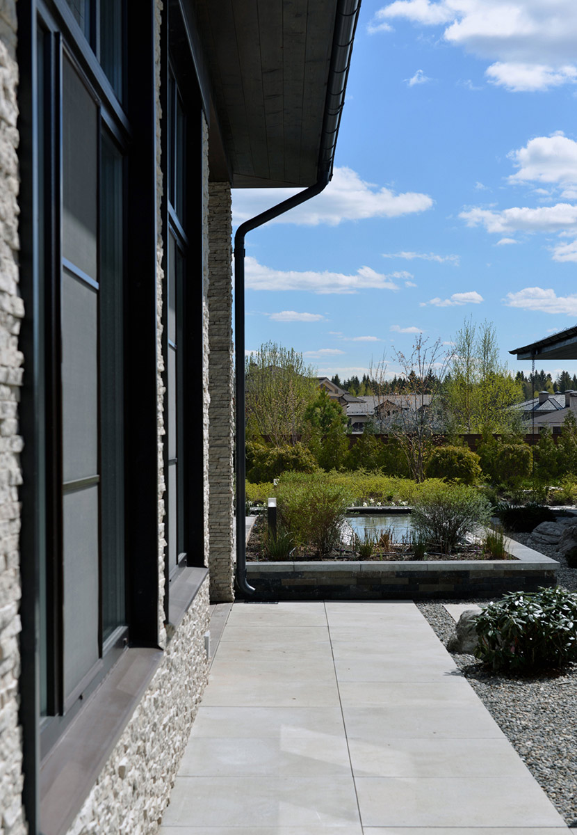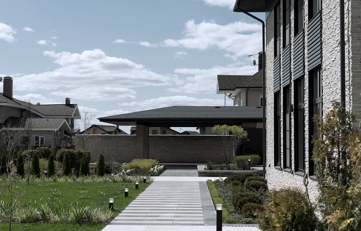 Двухэтажная вилла площадью 780 м² находится на территории Москвы. Она построена из монолита с заполнением кирпичом и облицована доломитом серым «лапша».