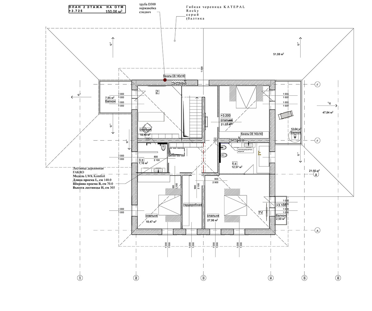 На втором этаже расположены три спальни, кабинет и санузел. Главная спальня снабжена отдельной гардеробной и ванной комнатой за стеклянной перегородкой.