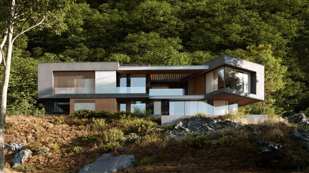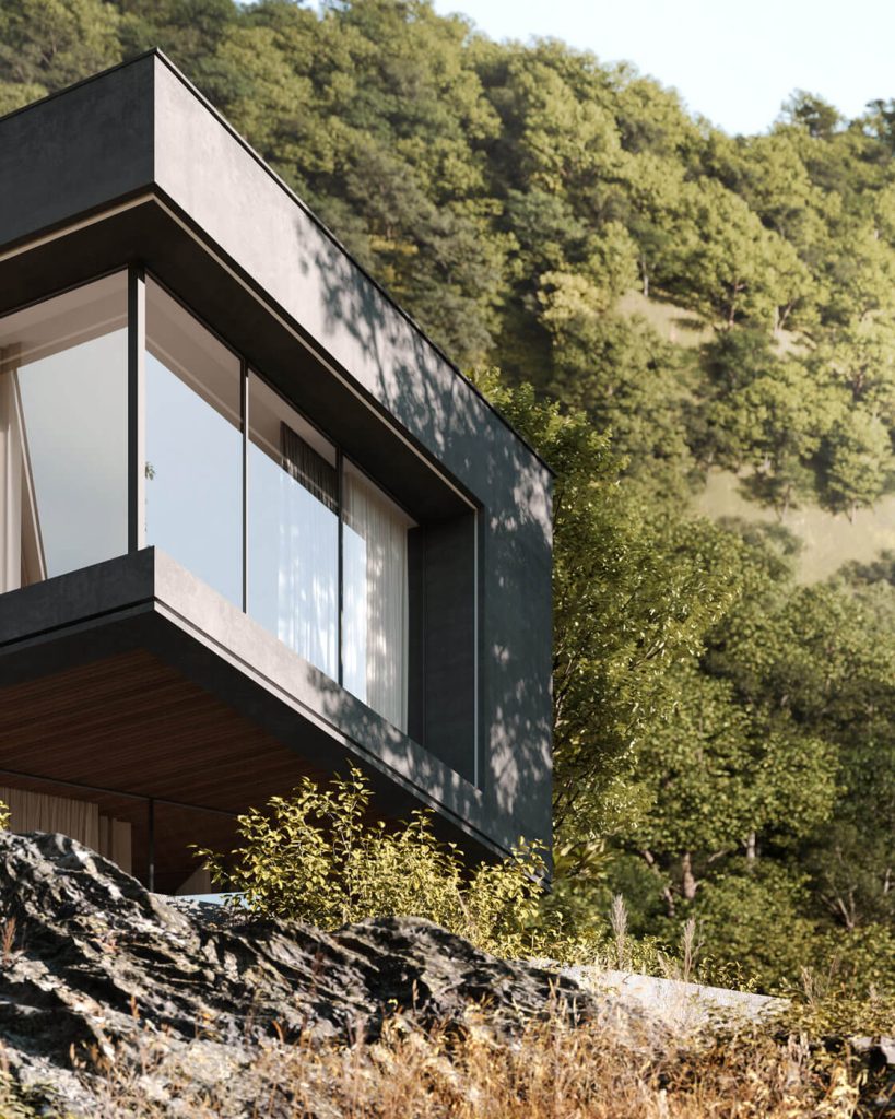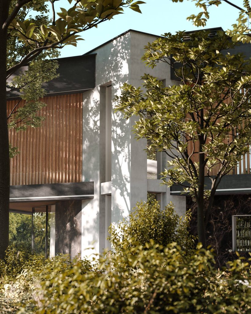 В основе философии проекта лежат принципы контекстуального дизайна: здание не просто занимает участок, а взаимодействует с ним. Этот проект отражает вдумчивую взаимосвязь архитектуры и природного окружения: монолитные грубые формы контрастируют с легкими стеклянными фасадами, а протяжённые контуры террас и парапетов повторяют линию морского горизонта. Здесь нет случайных решений — даже консоль на въезде, кажущаяся смелым художественным жестом, является тщательно продуманным элементом, создавая защищённую от осадков парковочную зону, а предварительно просчитанная ориентация объёмов учитывает движение солнца.