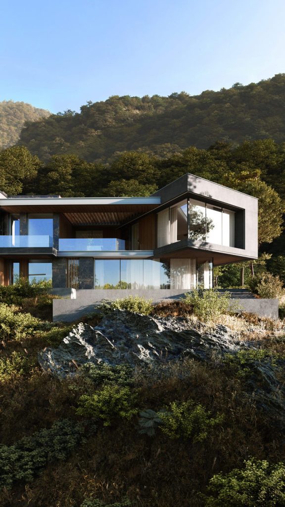 Расположенная на живописном участке, эта двухэтажная вилла аккуратно интегрирована в природный ландшафт, открывая изысканные виды на море из каждого помещения. Архитектурный замысел подчинён гармонии с природой: панорамное остекление, отражающее морскую гладь, продуманные объёмы и игра света создают ощущение непрерывного диалога интерьера с окружающим пространством.