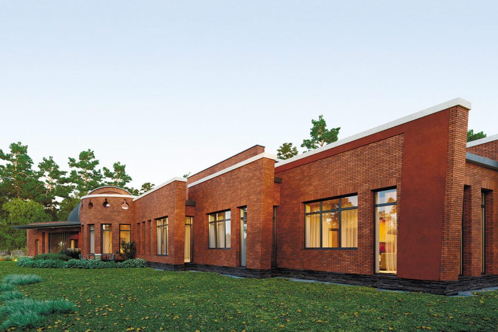 Функциональная планировка разбита на несколько блоков. На северную часть к дороге смещены все технические помещения, котельная, санузлы, гардеробные, склад. Все жилые, гостиные зоны, кухня, кабинет, спальня смещены, соответственно, внутрь двора, откуда открывается красивый вид.