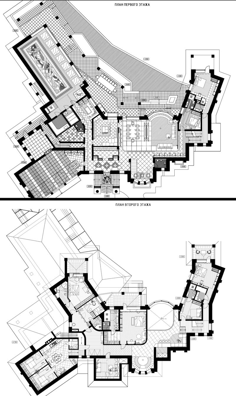 На втором этаже центральной части дома размещен блок главной спальни с ванной и гардеробной, в двух боковых крыльях — блоки с двумя спальнями, санузлами и зимними садами в каждом. С балкона-галереи второго этажа открывается вид на Пестовское водохранилище. Над гаражом расположена полноценная квартира персонала с отдельным входом с участка.
