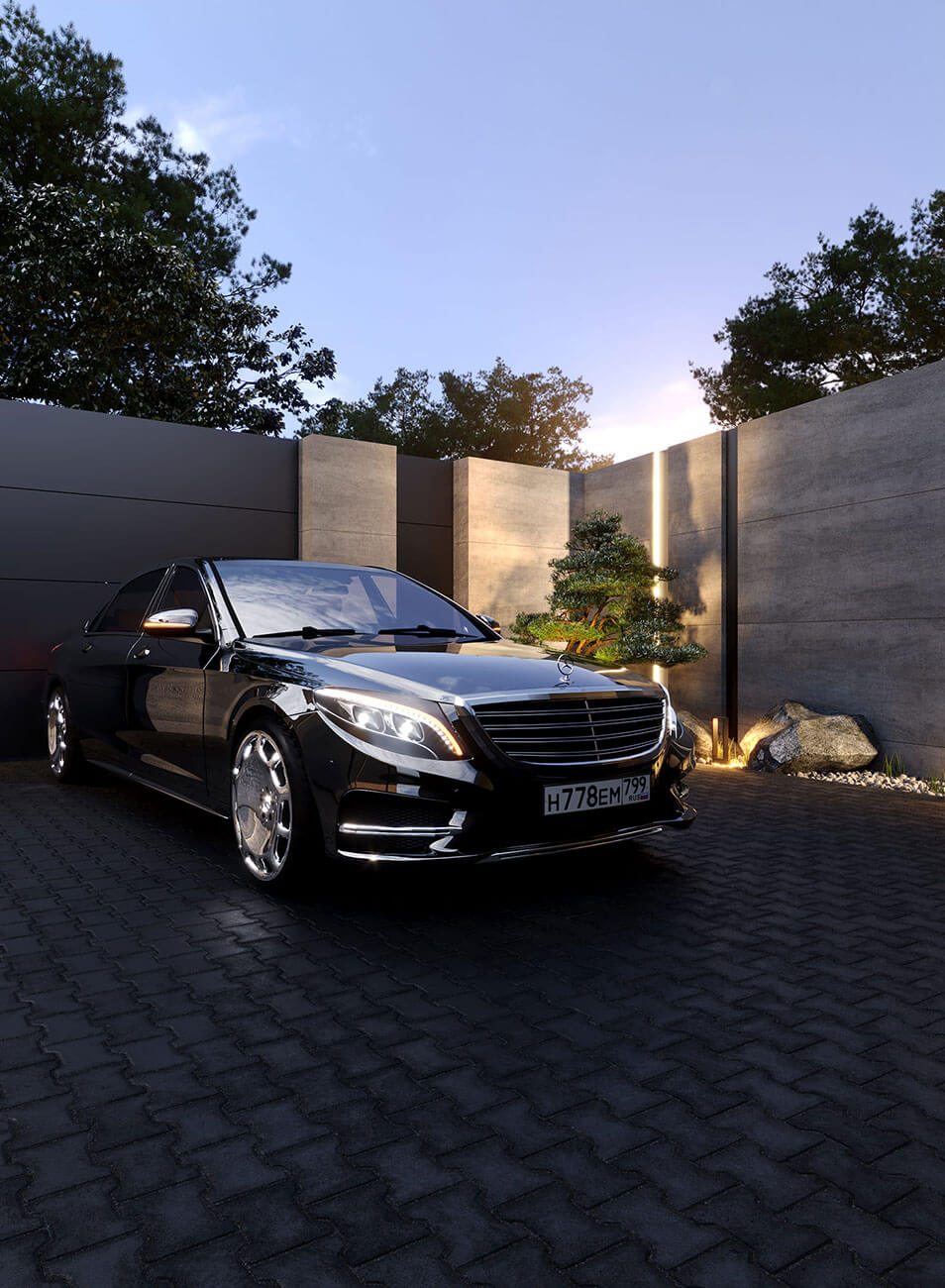Участок, на котором находится проект, окружен живописной природой. С виллы открывается потрясающий вид на реку. К ней ведет весьма необычных форм лестница, сделанная из прочного керамогранита. Каждая ступень лестницы оснащена декоративной подсветкой.