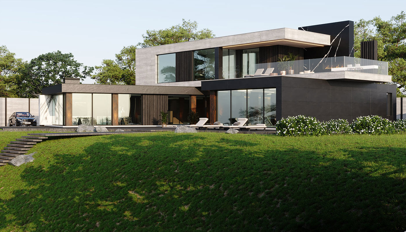 Жизнь в загородном доме — это новый уровень комфорта. Представляем вашему вниманию впечатляющий своими масштабами проект виллы в современном стиле, архитектура которого была создана в гармонии с природой. С участка обнаружился совершенно нереальный вид, в который мы влюбилась сразу. Вилла находится в уникальном месте на склоне холма в тихом живописном месте откуда открывается потрясающий вид на реку. Современный взгляд на архитектуру с уникальной формой воплощение мечты. Каждая деталь тщательно продумана и оставляет потрясающее впечатление.