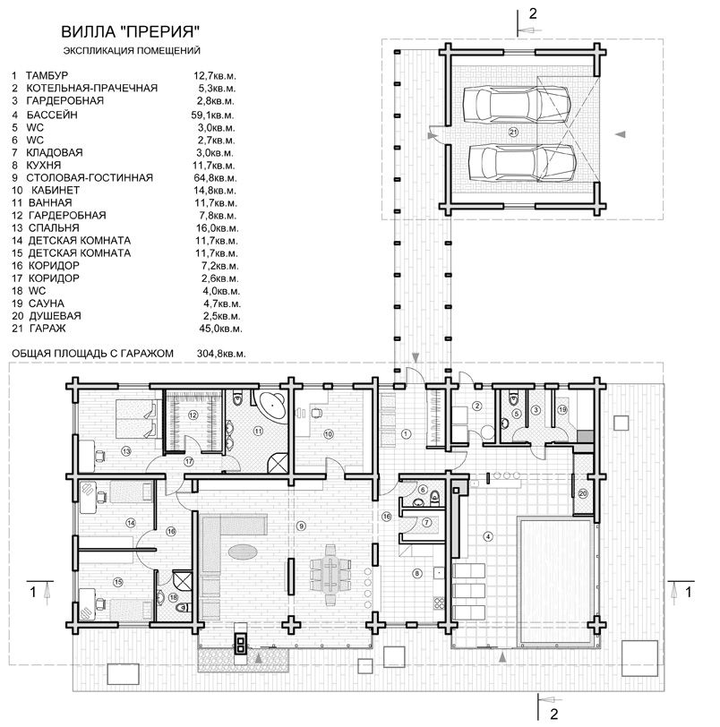 Общая площадь: 304,80 м2.