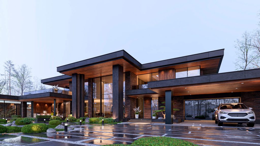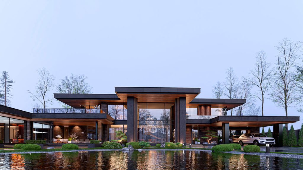Проект выполнен в духе органической архитектуры. Благодаря панорамному остеклению границы стираются и окружающий ландшафт перетекает в интерьер, становясь его частью. Дом наполнен светом и воздухом и гармонично вписывается в красивую природу пригорода Рязани.