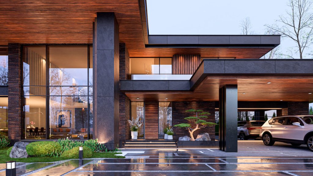 Проект предполагает использование натуральных материалов: натурального камня, дерева, кирпича, керамогранита.