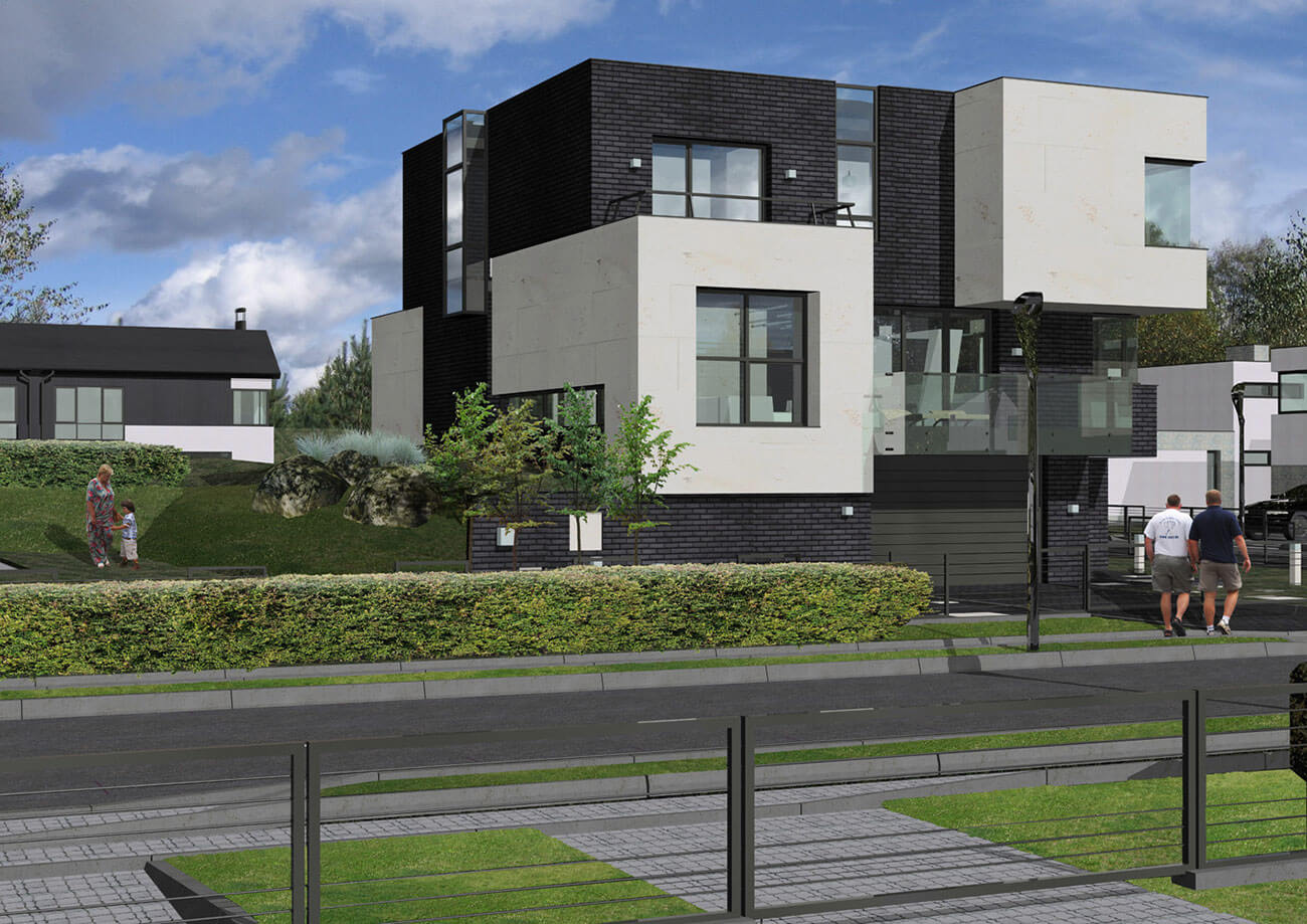 Проектная задача: создать угловой акцент в квартале малоэтажной застройки.