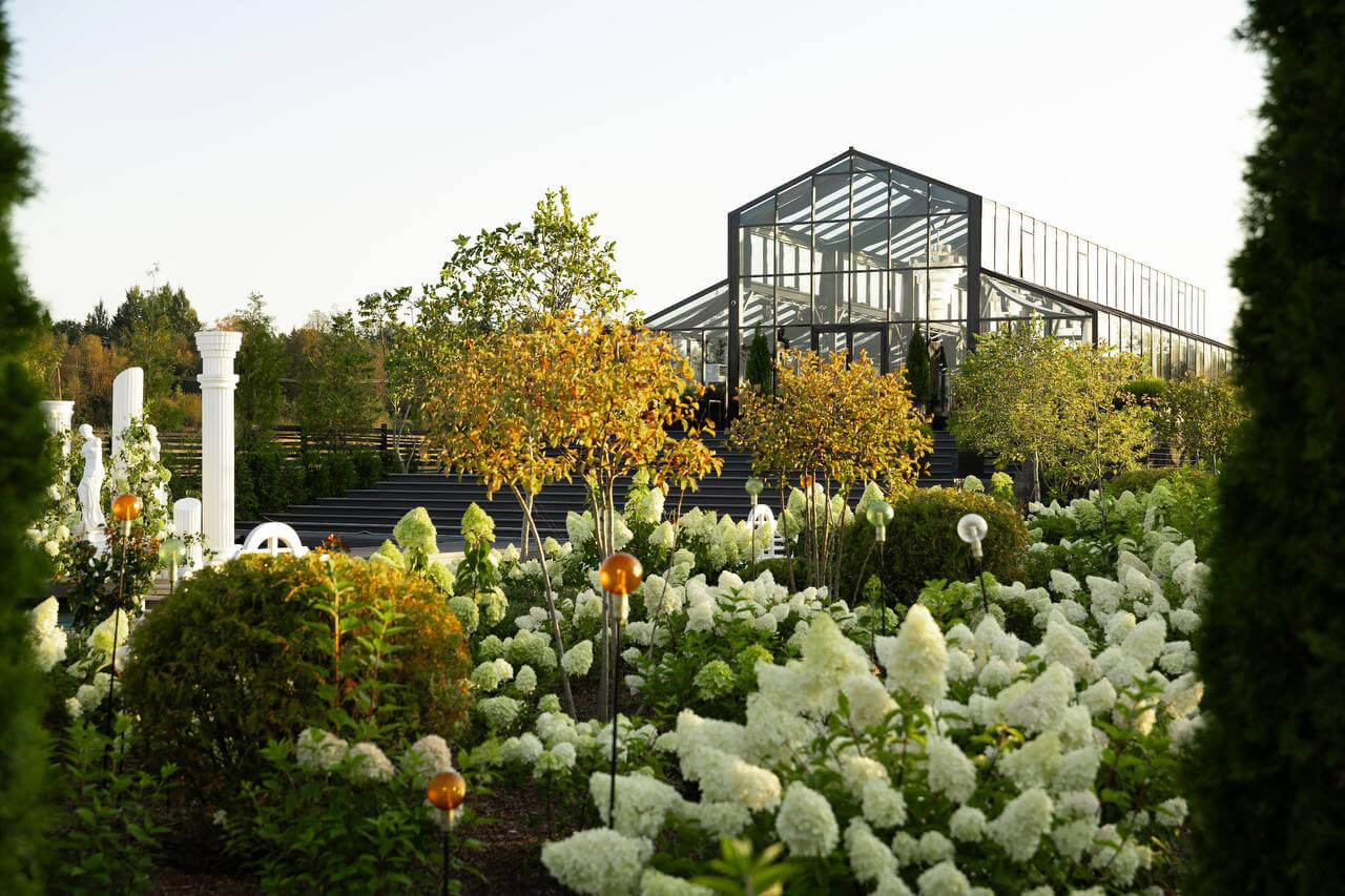 Загородный банкетный панорамный , стеклянный ресторан в Санкт Петербурге. Парк - сценарий с плавным перетеканием сцен, маршрутов, перспектив. Великолепная задумка и интересная реализация