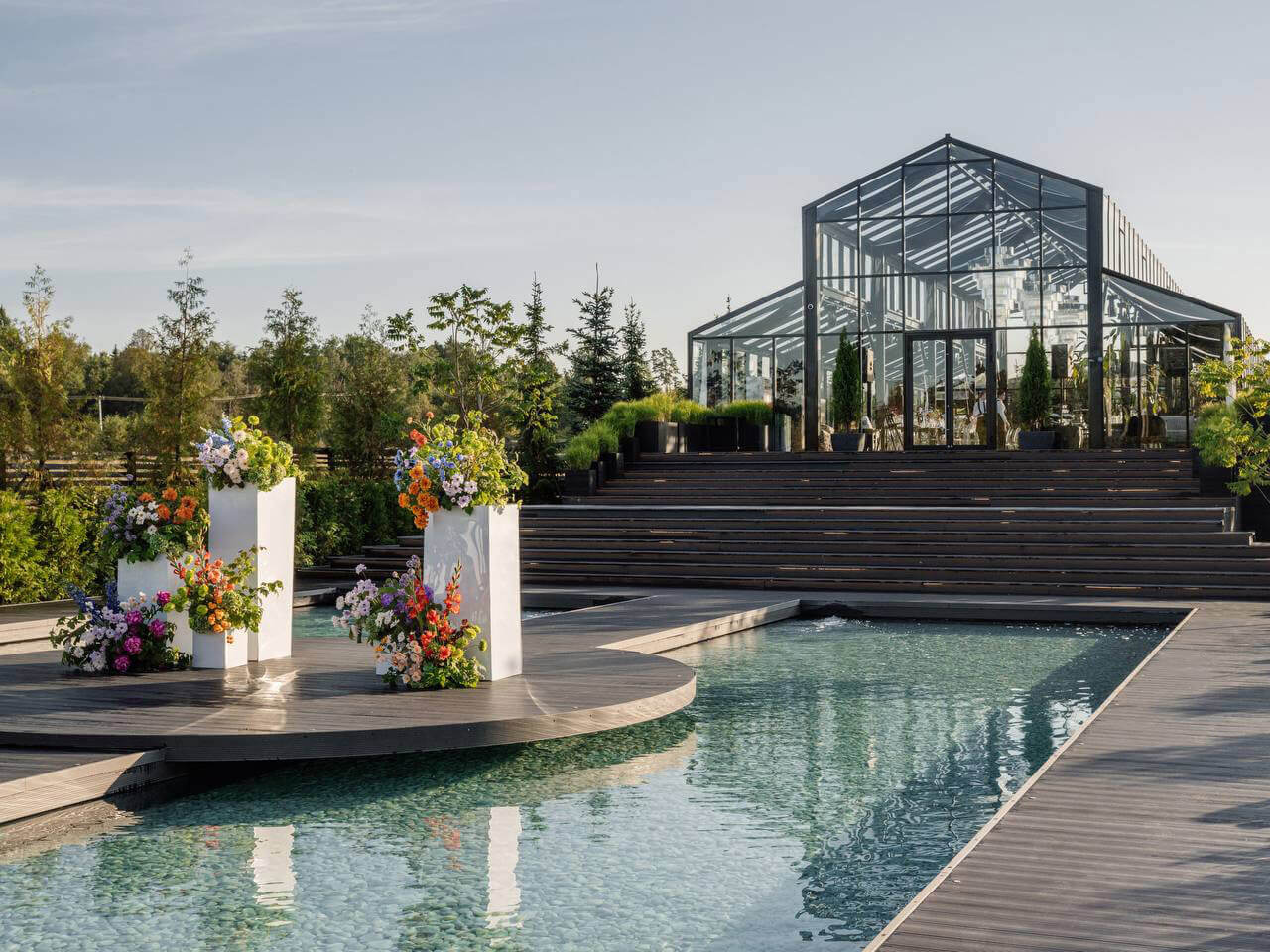 Vinity Amore — это загородный банкетный ресторан нового поколения и первый стеклянный панорамный ресторан в Санкт-Петербурге, ставший заметным прорывом благодаря своей ландшафтной концепции. Проект задуман как целостная пространственная среда, где архитектура не доминирует над природой, а становится её продолжением. Главная идея — создать ощущение итальянского островка среди северного пейзажа и передать атмосферу тосканской провинции.
