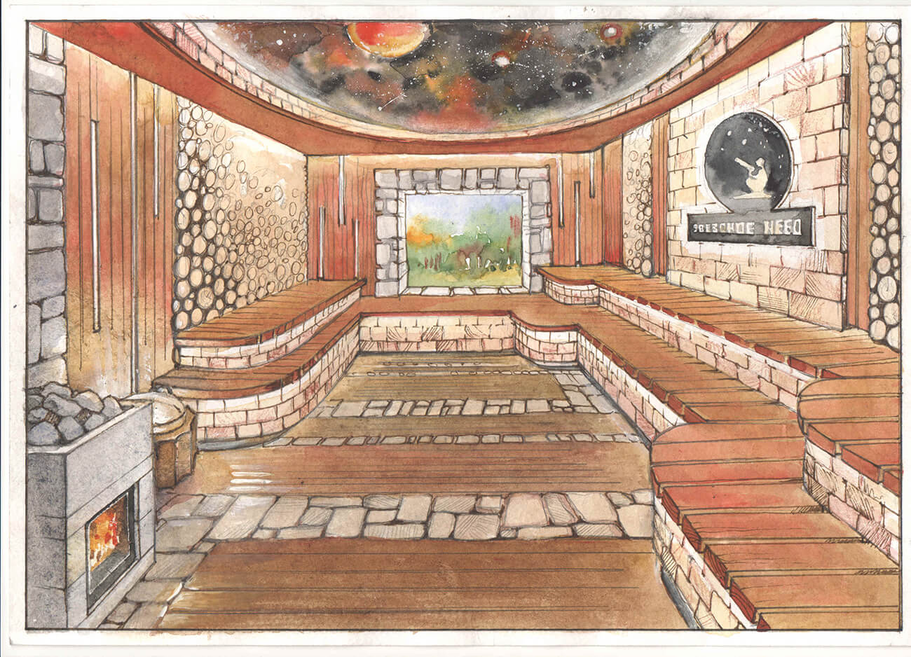 Проект разработан и реализован с целью удивить посетителей спа-центра не только оформлением, но и функционалом ВИП-сауны и стать изюминкой ВИП-зоны.