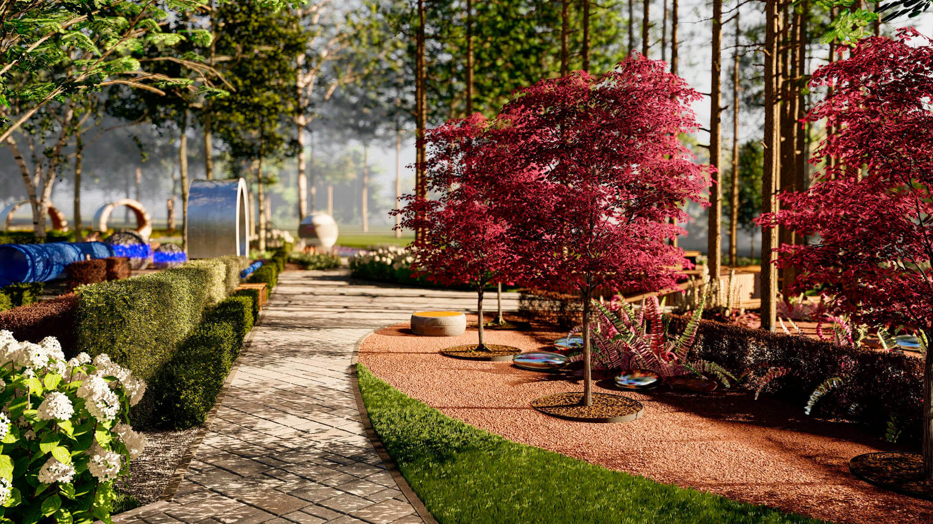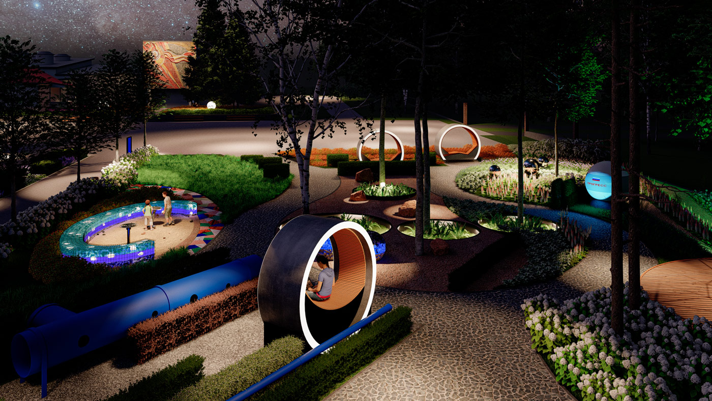 Ландшафтный парк – это не копия космической системы. Прежде всего, это попытка вызвать у детей интерес, развить образное мышление, привлечь к непривычному, с помощью ландшафтных элементов, проверить свои физические возможности: потренироваться на тренажерах и балансирах, послушать, как звучит космос, провести переговоры, оказаться внутри кометы, почувствовать малое пространство космического корабля и даже немного оторваться от земли и взлететь.