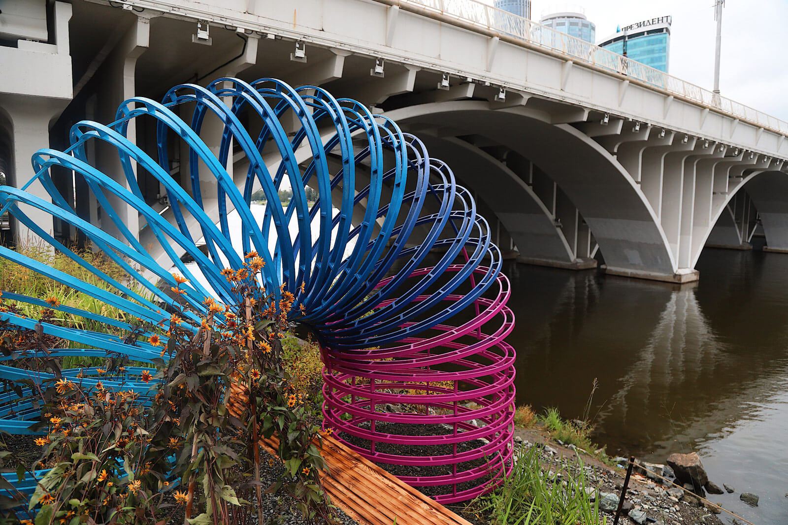 Парк вошел в зелено-водный каркас города Екатеринбург. Фокусными точками стали выставочные сады, созданные авторами из 7 городов: Лима, Баку, Москва, Казань, Белгород, Уфа, Екатеринбург. Высажено 5289 многолетников, 2308 кустарников,183 дерева,180 лиан,167 водных растений. Вся территория набережной (S= 5 870 м^2) была не только озеленена, в ней были применены зеленые технологии и мониторинг городской среды: