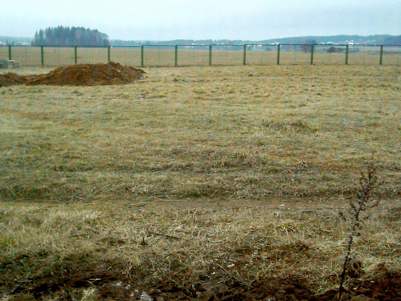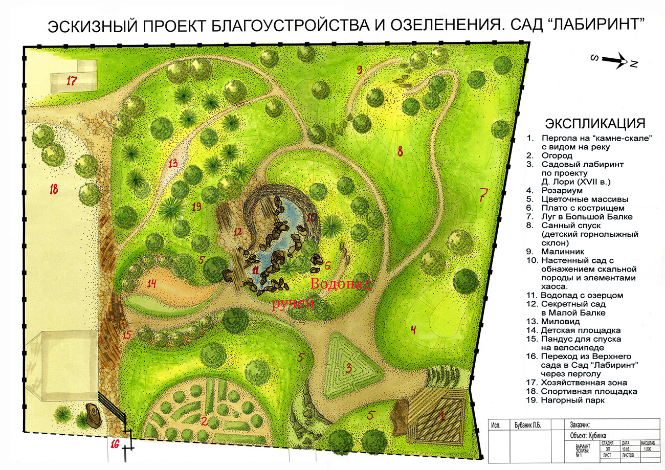 На лужайку и водопад открывается вид с замощенной площадки, которая станет основанием для перголы и зоны отдыха.