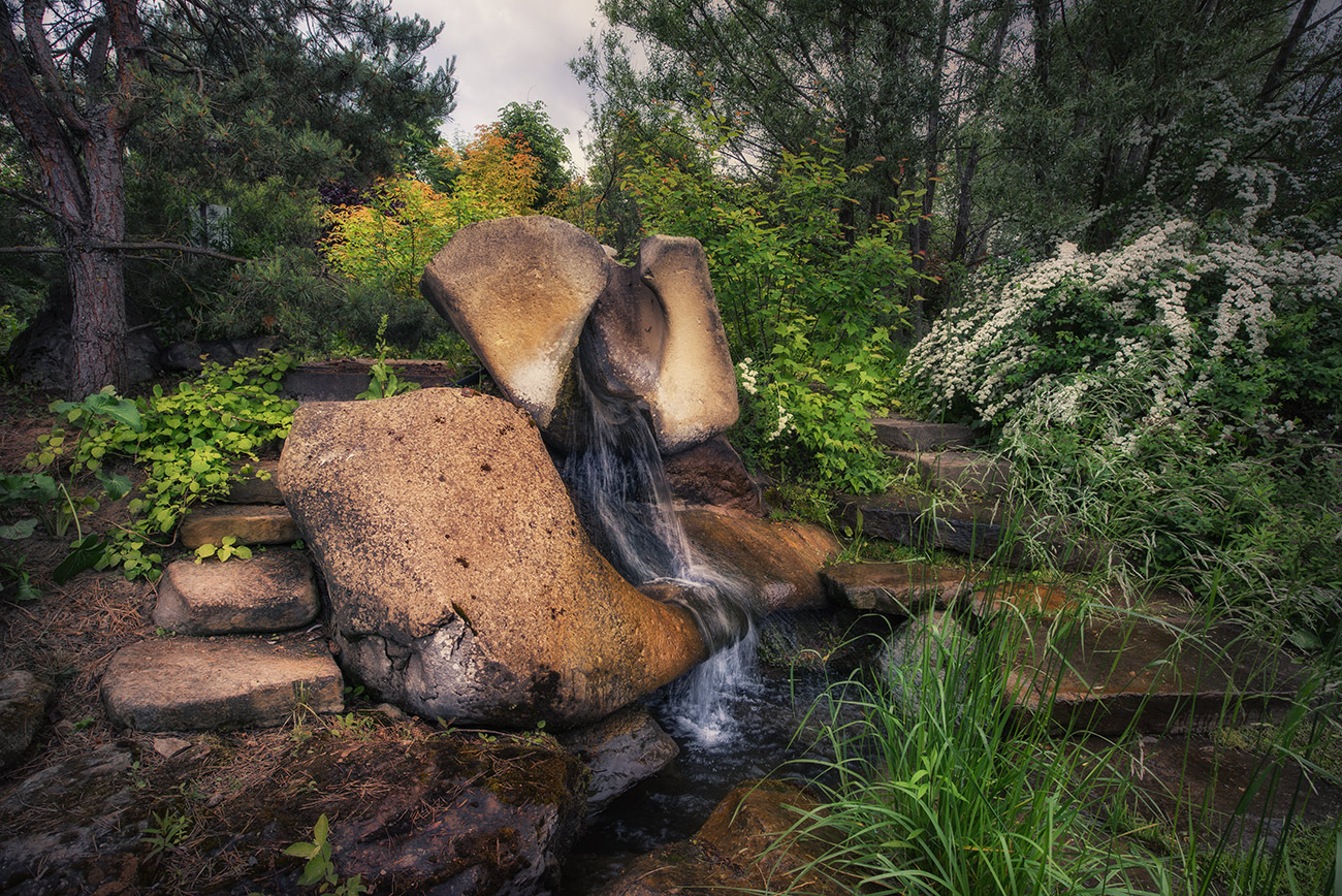 Водопад «Слоновьи ушки» — рукотворный водопад на искусственном рельефе из уникальных природных глыб песчаника.
