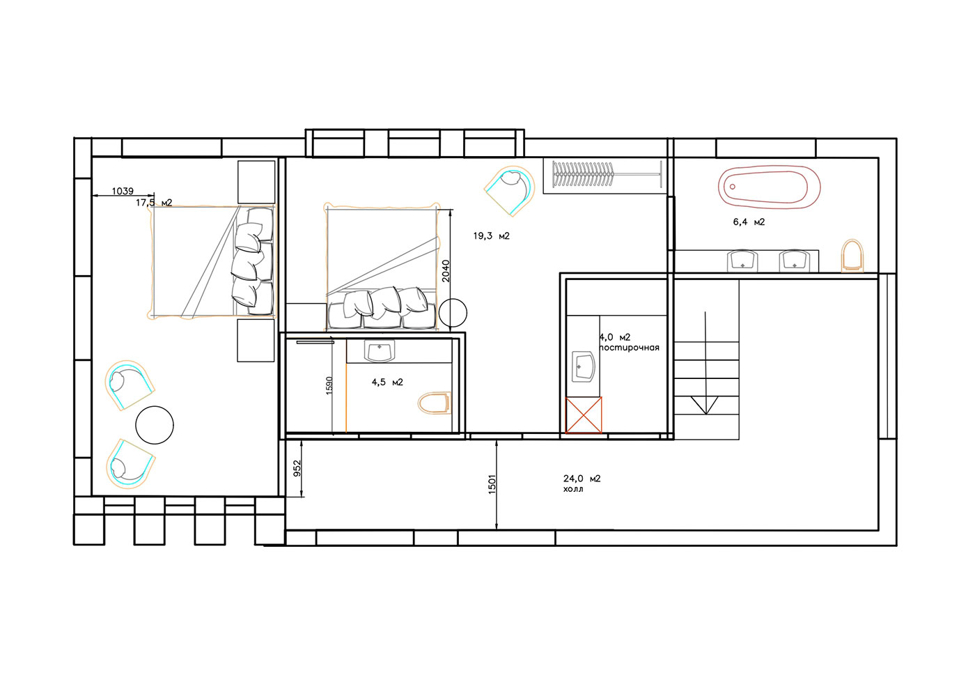 Задачей дизайна дома мы поставили создание экспрессивного дома, чтобы раскрасить жизнь в частых серых московских буднях. Эстетика, наполненная «совершенным несовершенством», получается за счет первоначального разложения целого, затем перекомпоновки с включением новых материалов. Творческий процесс получился результатом художественного наслаивания.