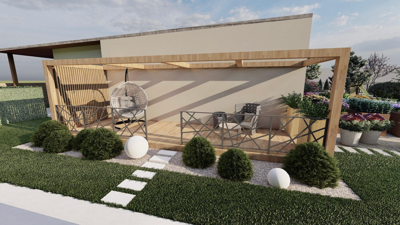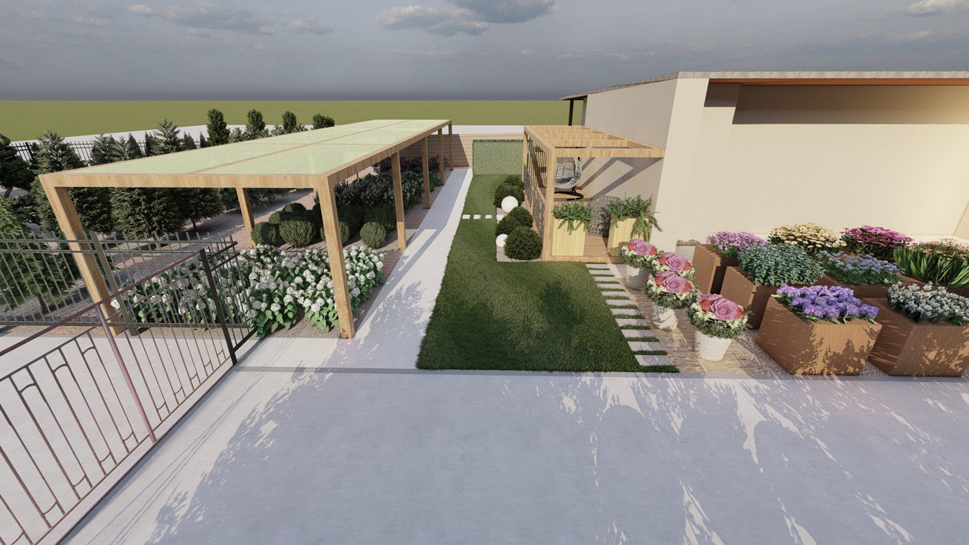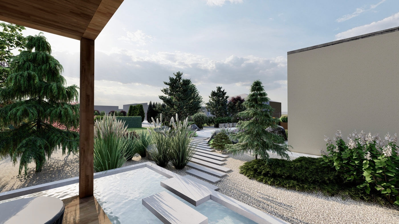 Выставочный сад при садовом центре будет располагаться в закрытом загородном поселке «Ясная Поляна», который будет иметь несколько сценариев организации пространства: торговая площадка, лаундж-зона в виде современных пергол с декоративным водоемом, детские площадки, зона очага, образцы садовой мебели. Сад предназначен для жителей поселка, как дополнительная зона отдыха, посетителей торговой зоны, гостей поселка. На территории также можно проводить event-мероприятия и мастер-классы. Отдельно хотелось бы обратить внимание на материалы, которые будут использованы при реализации проекта. Детские площадки будут выполнены из Robinia – экологичный, износостойкий и противоаллергенный материал. Перголы будут выполнены из массива дерева – это дополнительно погрузит посетителей в стиль джапанди и атмосферу умиротворения. На территории нет больший и массивных построек, вся концепция выстроена с максимальным приближением к природному стилю, также нет кричащих оттенков в отделке. Торговая зона: есть открытые зоны с навесом и без, и выставочная площадка, которую можно использовать круглый год. На выставочной зоне представлен ассортимент из садового инвентаря, декоративные кашпо, малогабаритная садовая мебель, сделанная вручную, декоративные бонсаи, а также выставочные образцы арт-объектов для ландшафтного дизайна. Прогулочная зона выделена декоративной отсыпкой, рулонным газоном и мощеными дорожками. Освещение: точечная подсветка определенных зон и растений, а также уличные светящиеся шары. Арт-объекты на территории будут представлены в виде каменных шаров для сада.