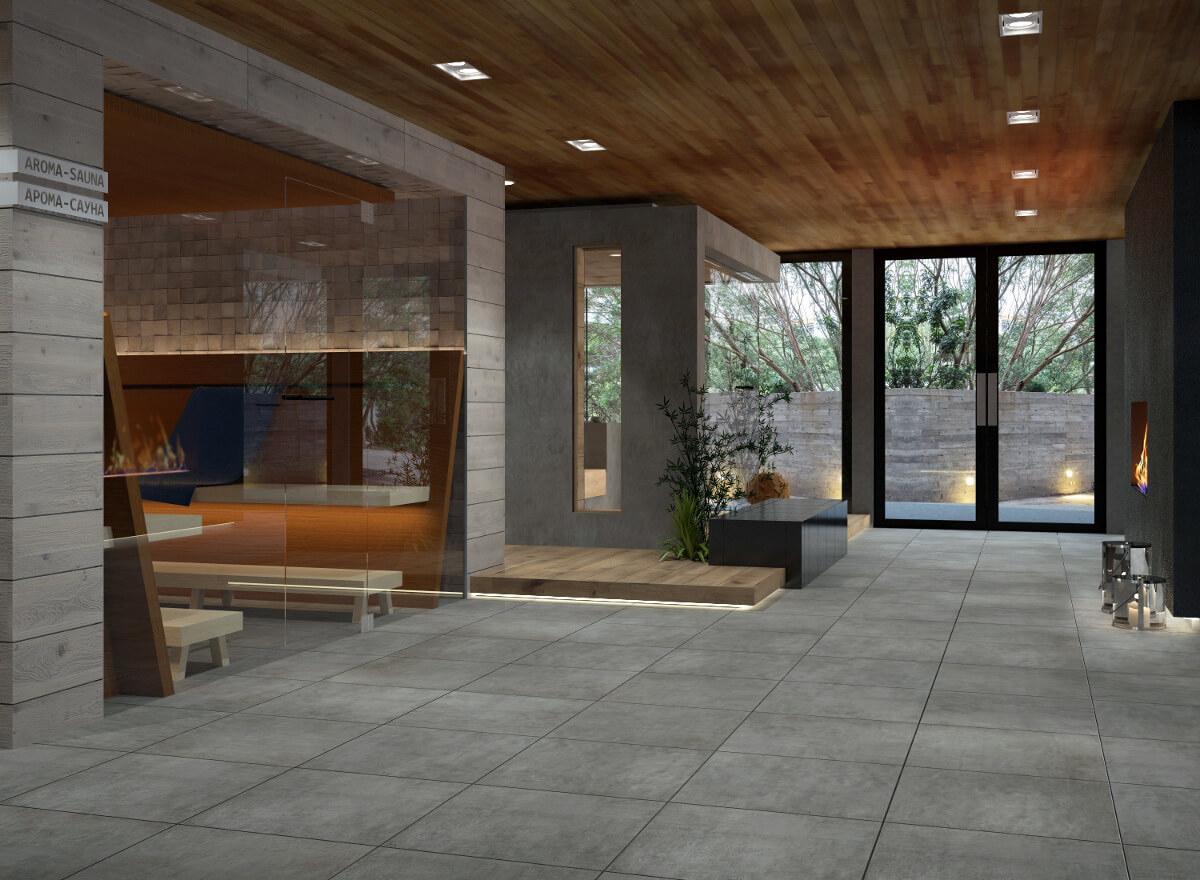 Стены и пол: casalgrande Padana Cemento grigio cassero.