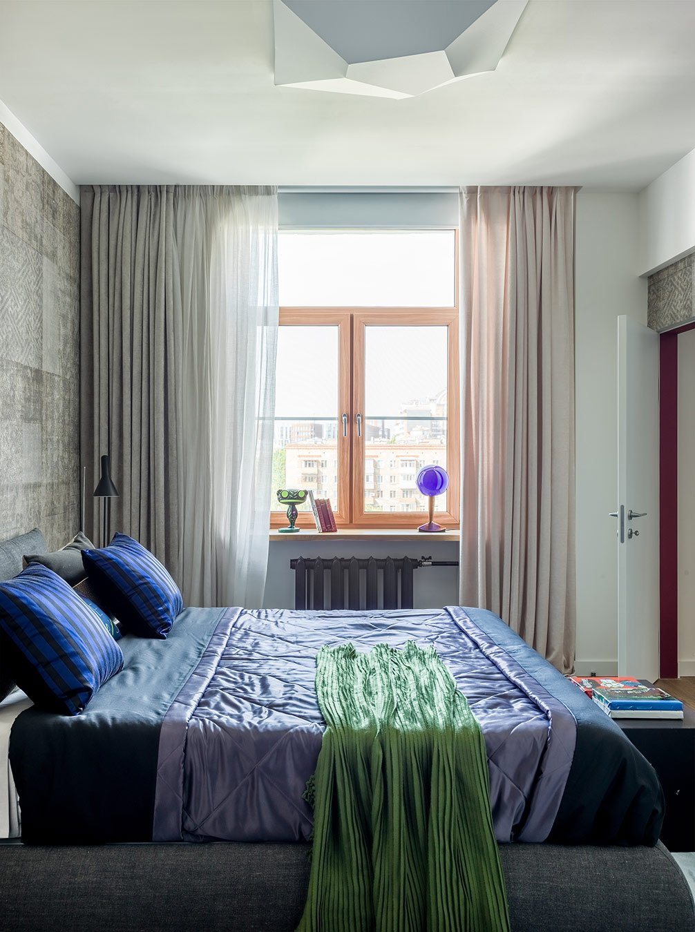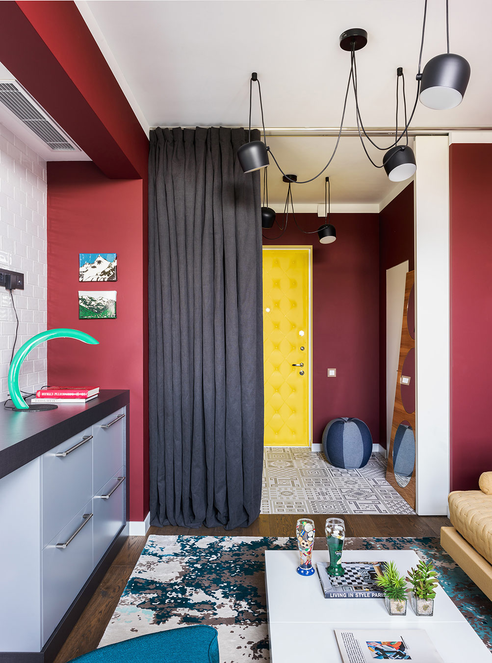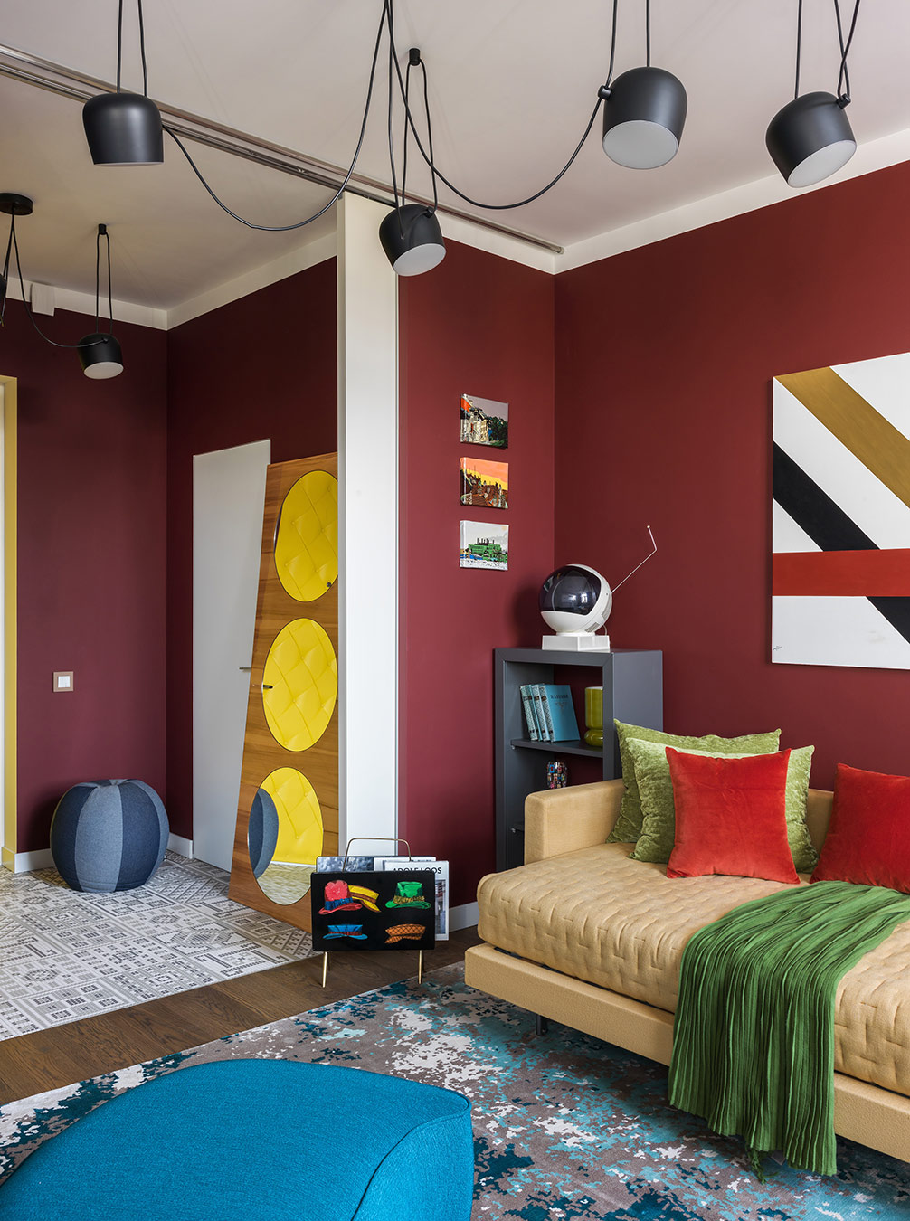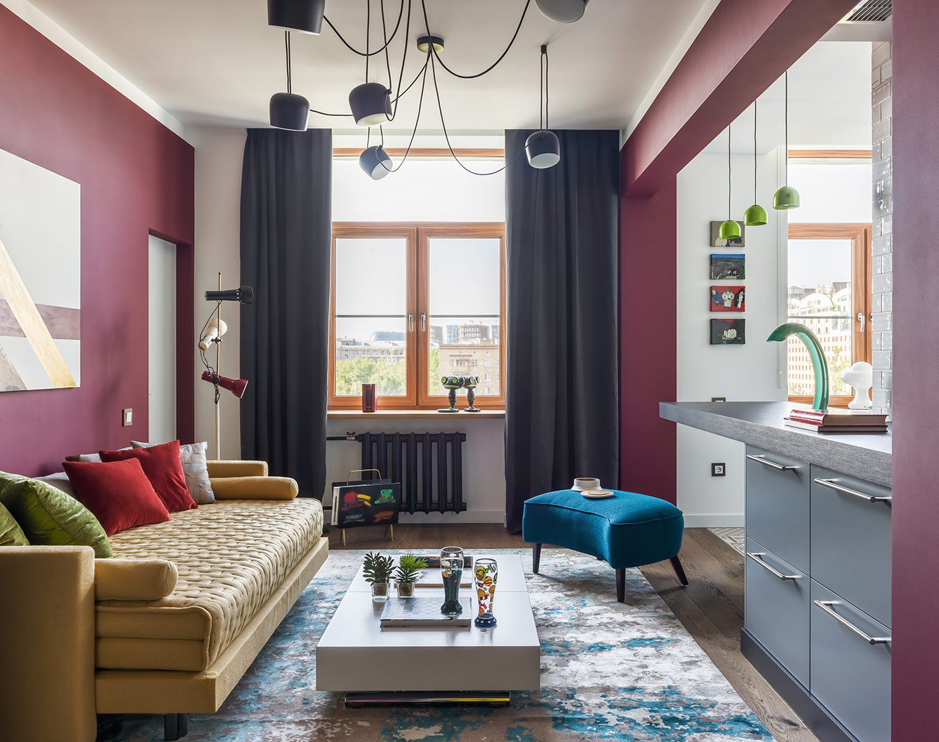 Заказчик обращается в студию уже не в первый раз и обычно принимает активное участие в оформлении, но в этот раз полностью доверился дизайнерам, поэтому не было никаких ограничений и строгого технического задания. Сначала планировалось сделать простой интерьер в спокойной цветовой гамме, но потом в палитру оформления добавили ярких красок, и заказчику это понравилось.
