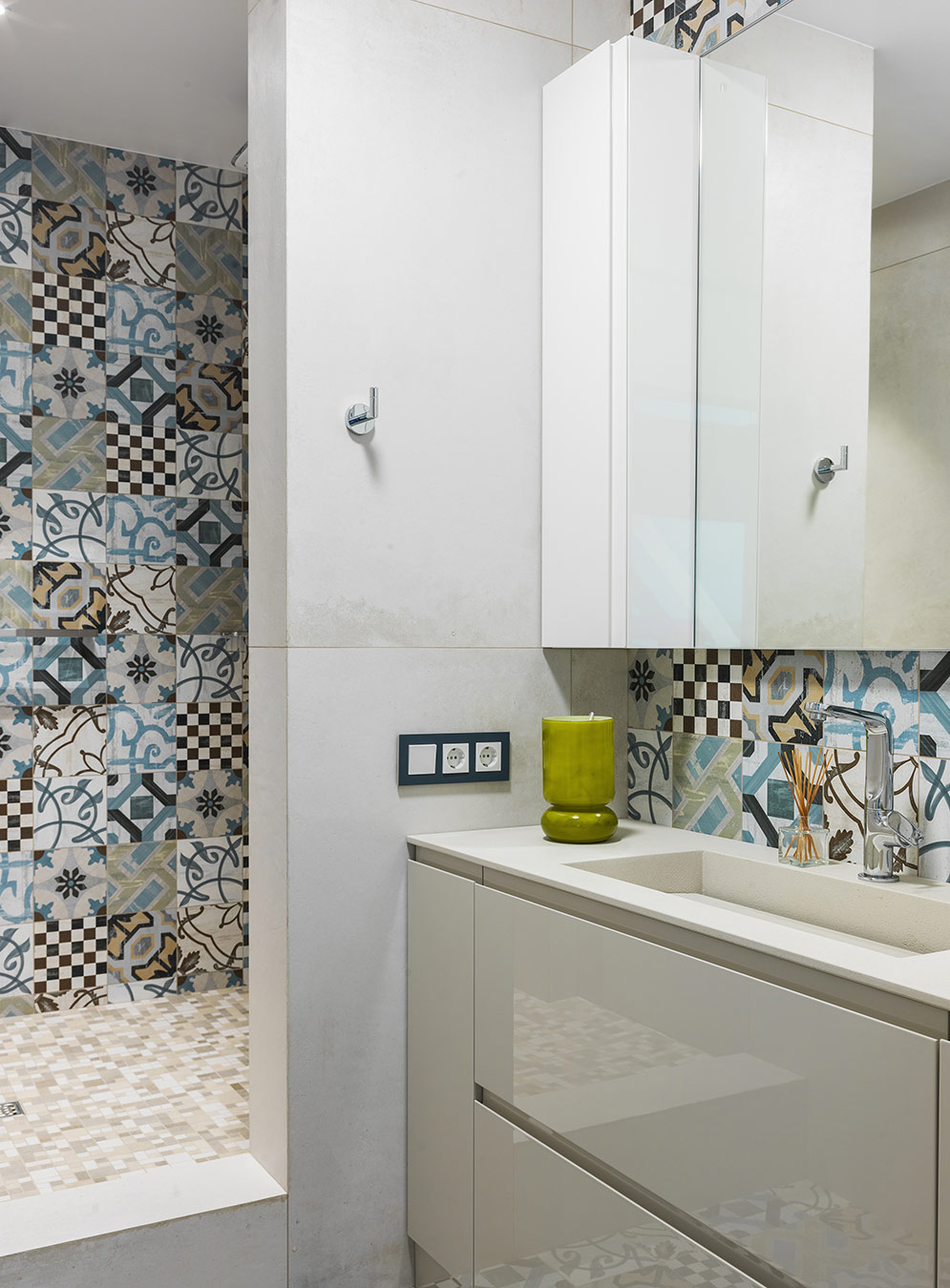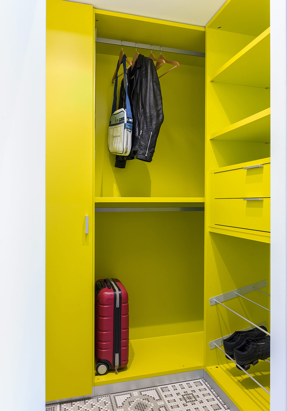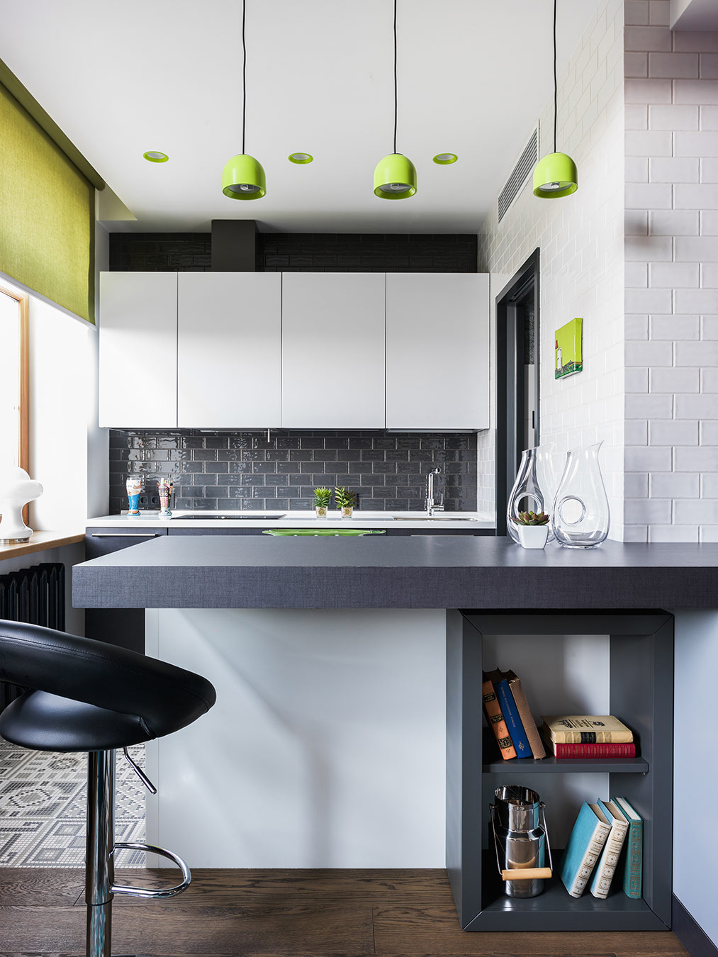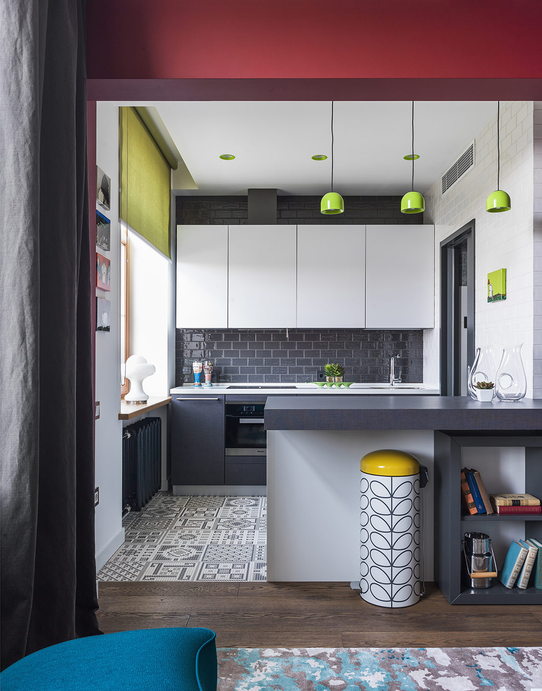 Заказчик обращается в студию уже не в первый раз и обычно принимает активное участие в оформлении, но в этот раз полностью доверился дизайнерам, поэтому не было никаких ограничений и строгого технического задания. Сначала планировалось сделать простой интерьер в спокойной цветовой гамме, но потом в палитру оформления добавили ярких красок, и заказчику это понравилось.