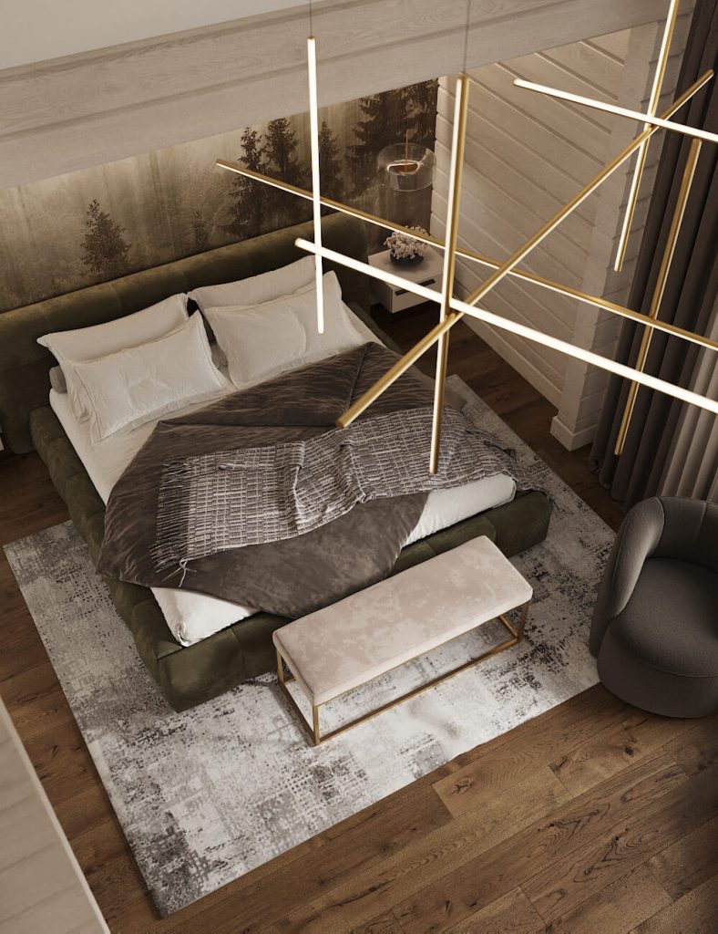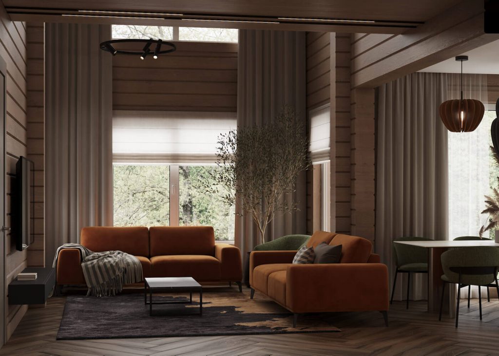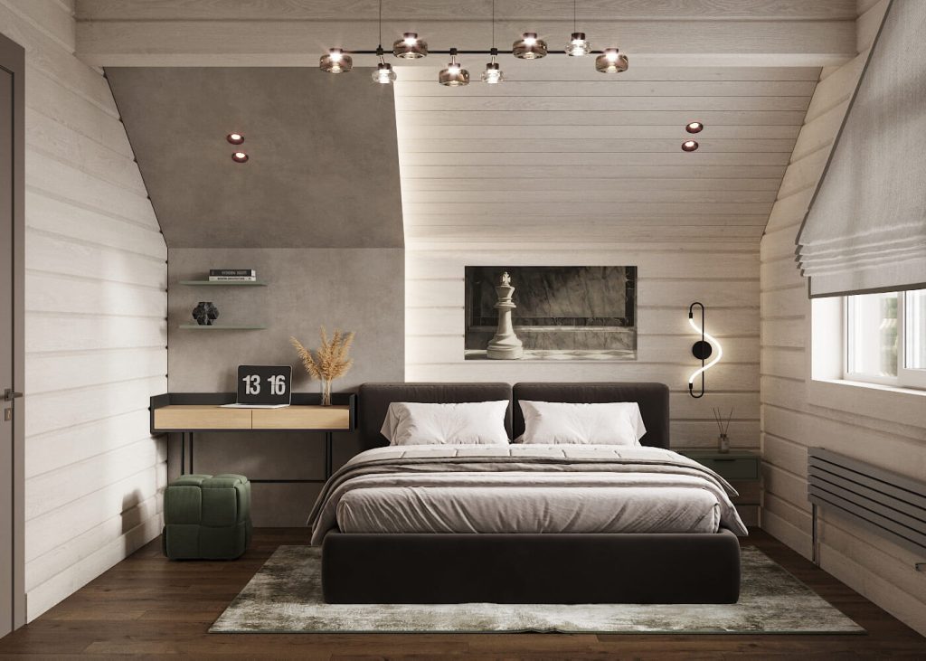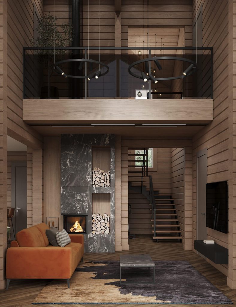 Главная идея проекта — сохранить натуральный материал бруса и вплести в него современную эстетику: чистые линии, свет, лёгкость, акценты. Сделать многофункциональные помещения. Здесь нет лишнего декора — всё подчинено функциональности и внутреннему равновесию.