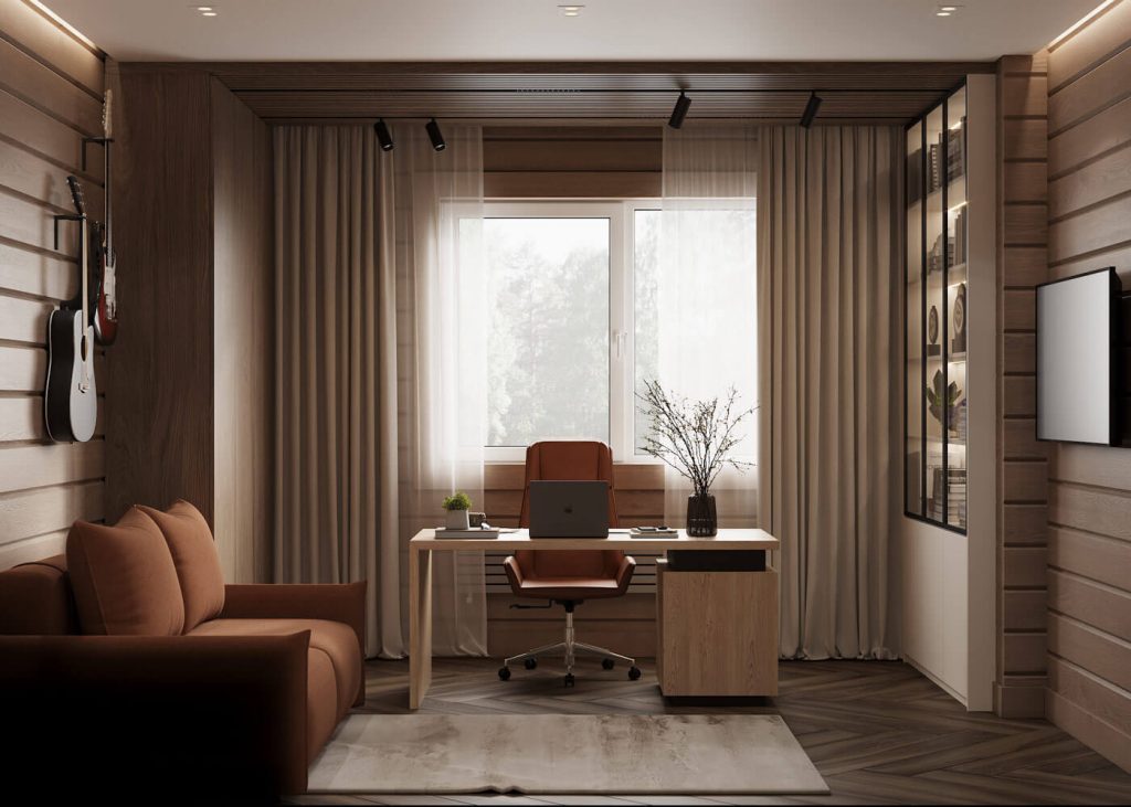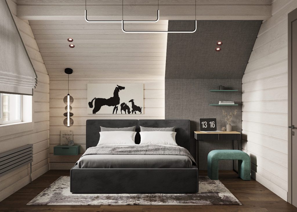 Интерьер — современный минимализм с яркими акцентами и сохранением природной фактуры дерева. Этот дом создавался для семьи, где у каждого — свой ритм, свои увлечения, свои тихие радости. Для тех, кто живёт активно, но ценит моменты покоя, кто любит спорт, природу и атмосферу дома, куда приятно возвращаться.