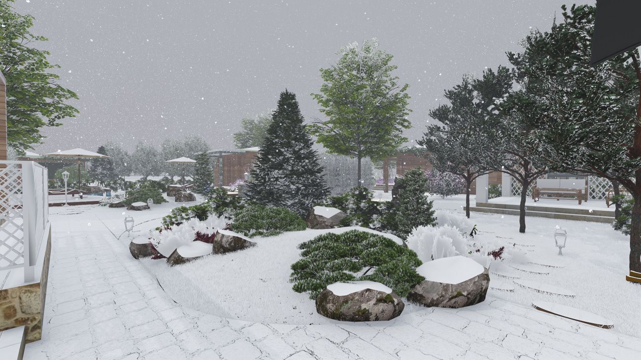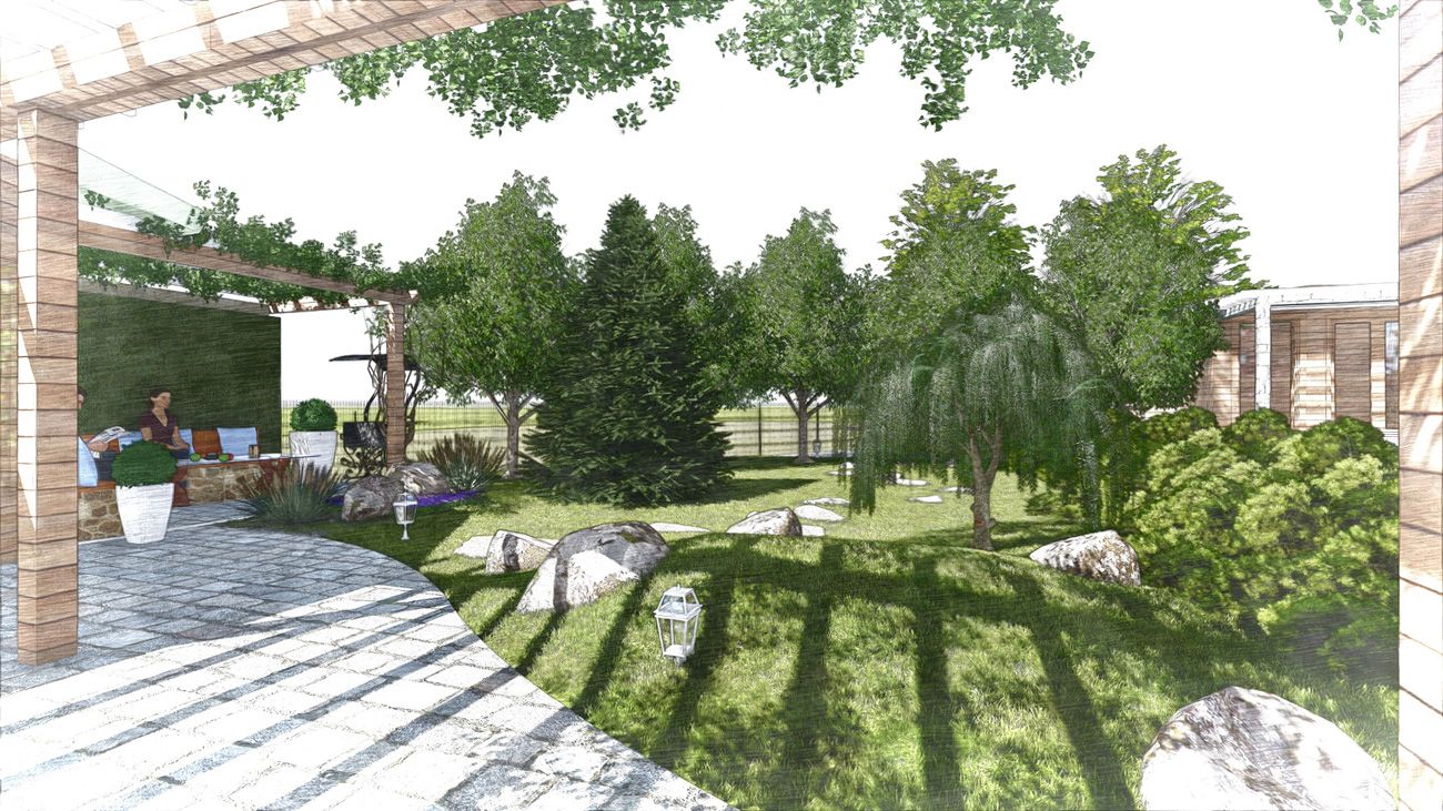 Так как лето в степных регионах Крыма особенно жаркое, то особенно актуальна для садовых участков защита от прямых солнечных лучей. Поэтому мы предусмотрели деревянные перголы над дорожками, парковками и в зонах отдыха.