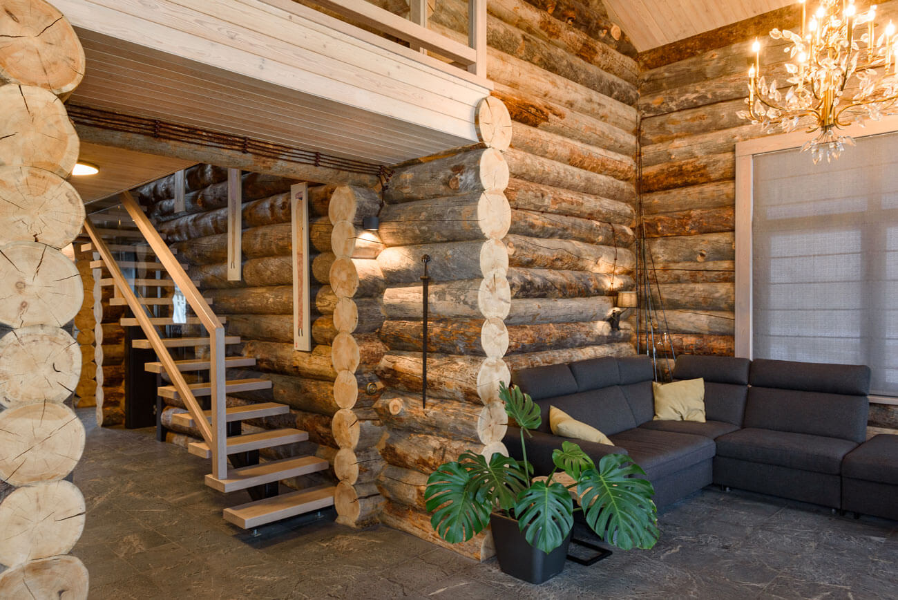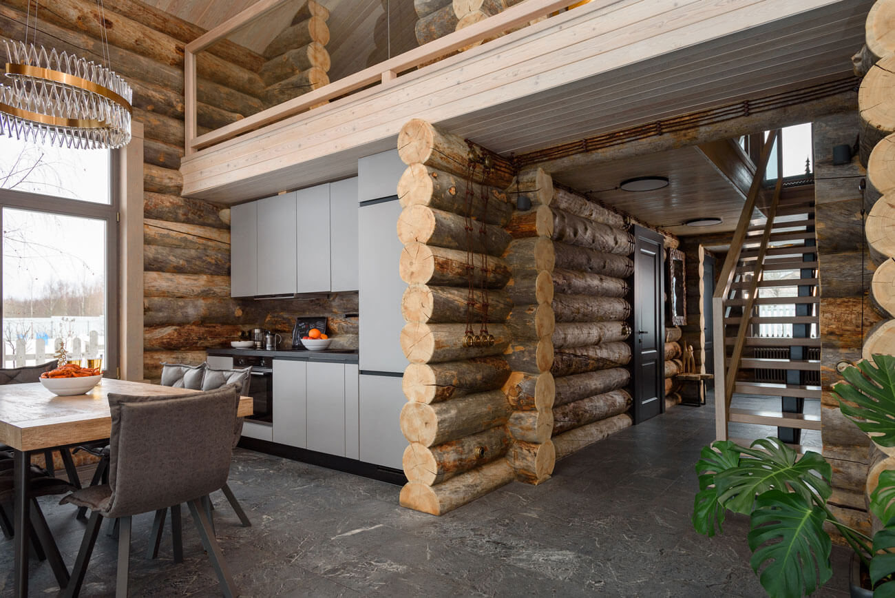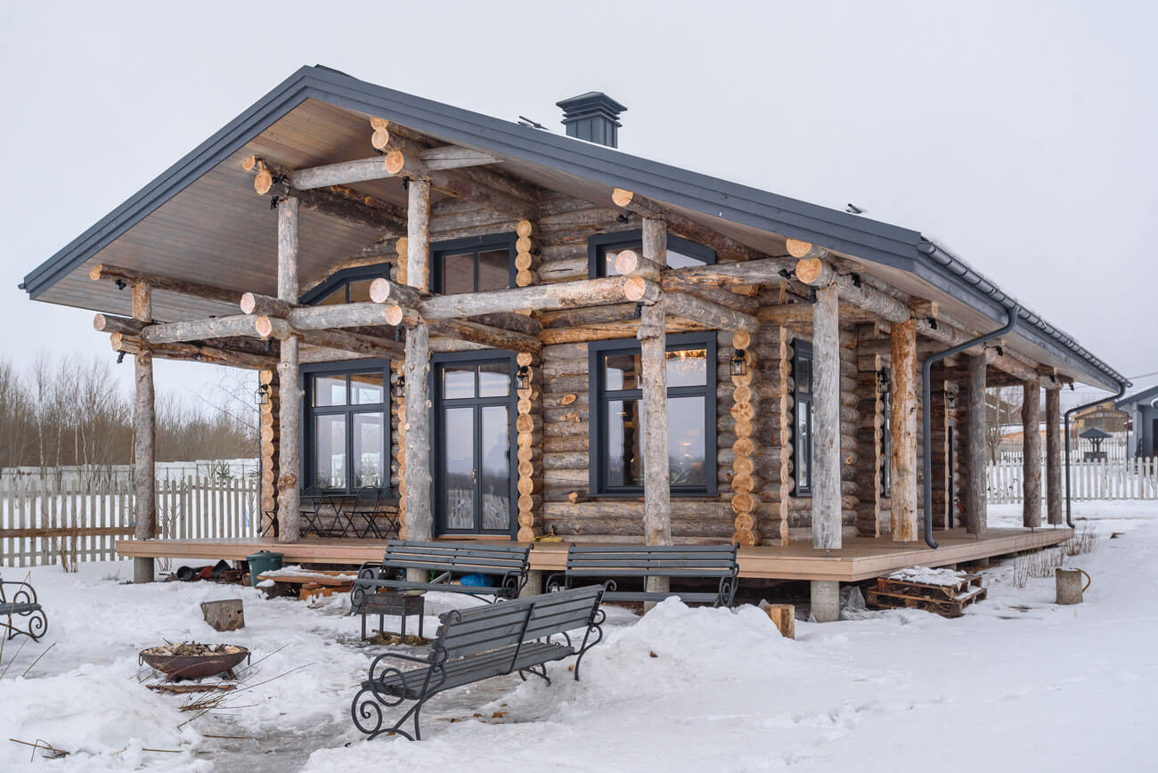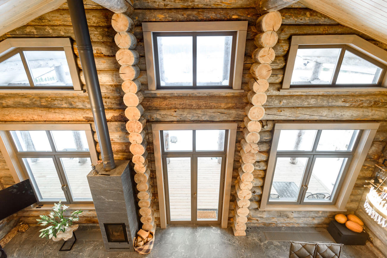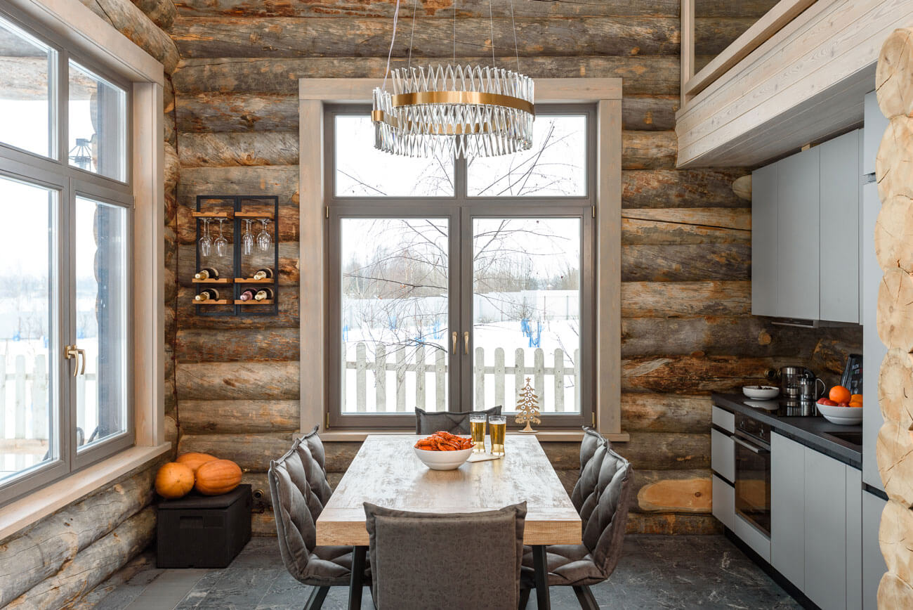 Наличники на окнах и доборы сделаны из лиственницы и покрыты кроющей серой краской. Выглядит стильно, правда?