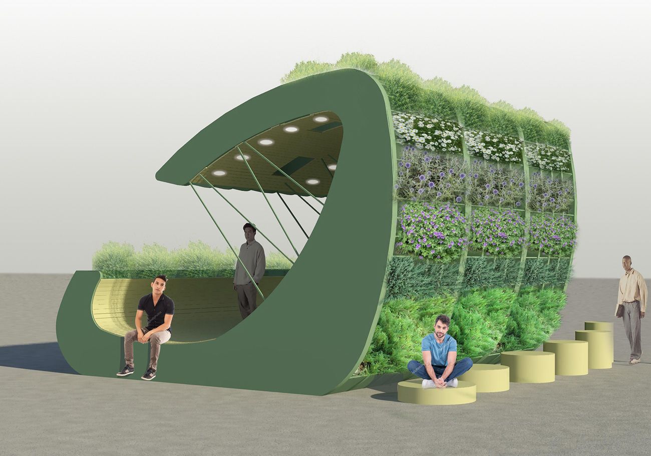 Зеленый валун — это малый сад, созданный в духе «зеленой архитектуры»: «зеленая» стена плавно перетекает в «зеленую» крышу. Пространственная деревянная решетка в форме волны позволяет вкладывать в ячейки конструкции контейнеры с растениями, благодаря чему внешняя сторона формы приобретает живую, цветущую оболочку.