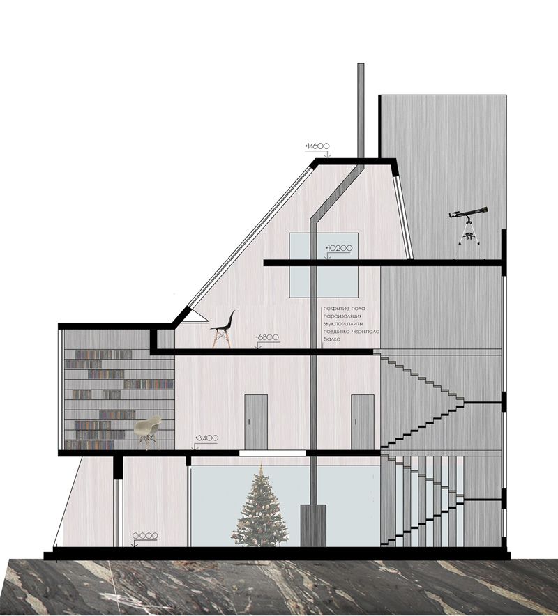 Основная идея — создание нестандартного и динамичного образа дома, который будет домом — образом определенного человека, а именно архитектора.
