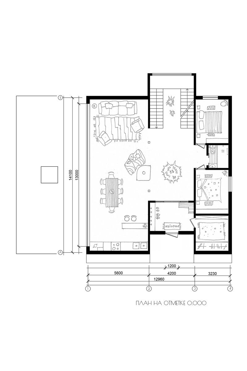 Планировочное решение продиктовано тем, что дом будет использоваться как место для семейного отдыха, вдали от городской суеты, так и для работы.