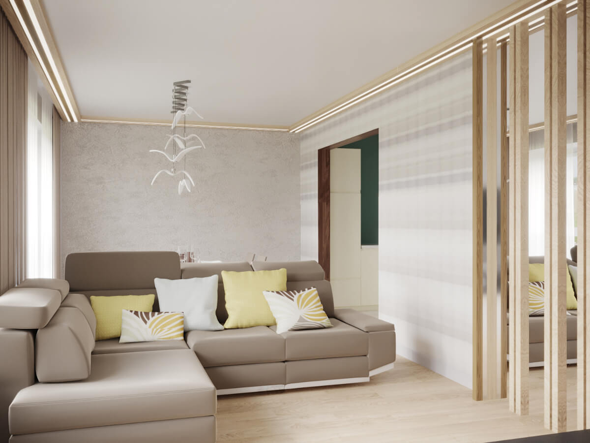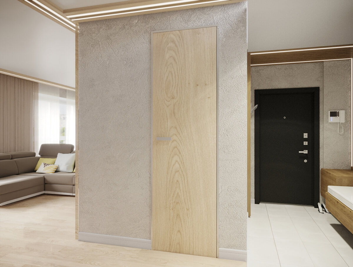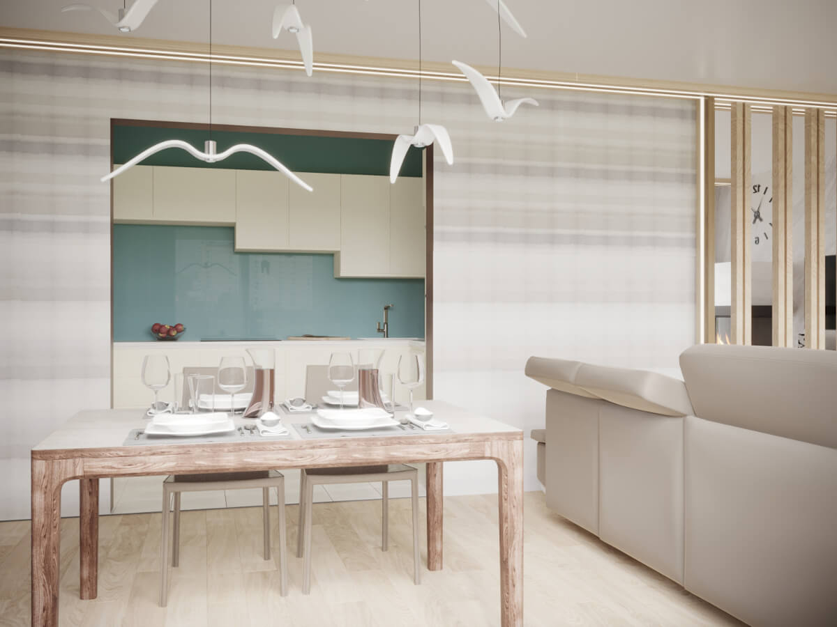 Яркой деталью является биокамин в стиле хай-тек с живым пламенем.