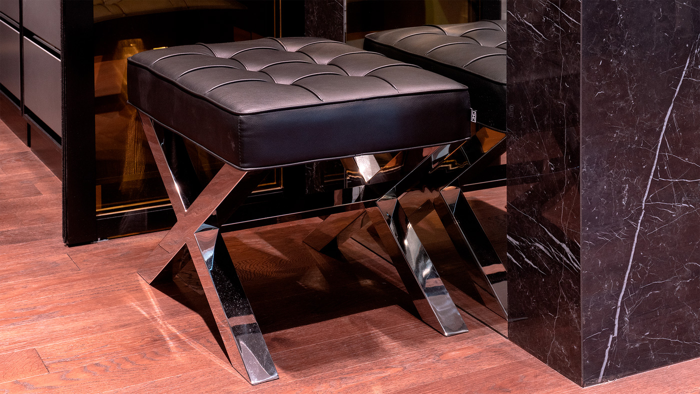 В интерьере спокойная цветовая гамма. На стенах металлизированная штукатурка. На полу штучный паркет из натурального дуба. Он уложен по особой технологии и не имеет плинтуса. Пространство между стеной и паркетом заполнено акриловой затиркой в цвет пола.