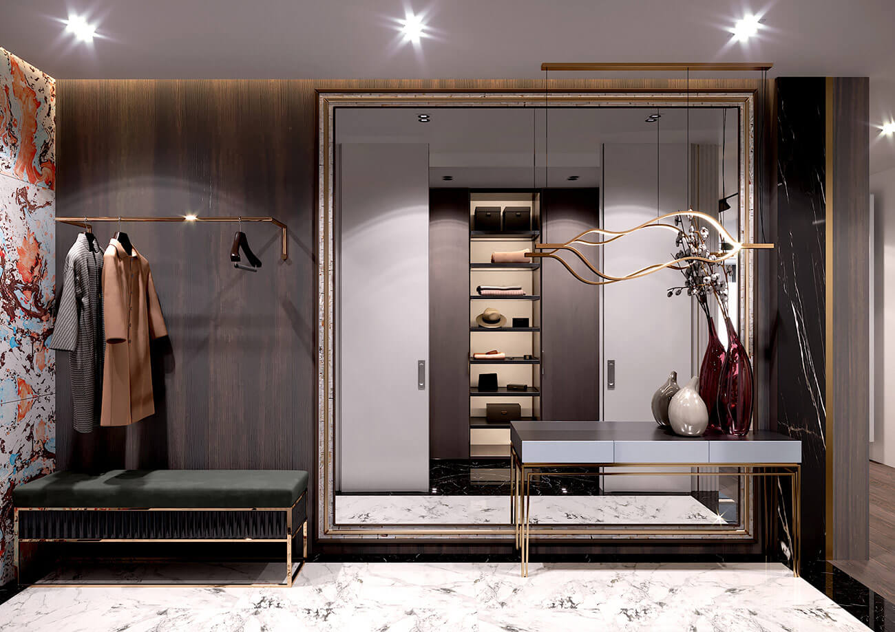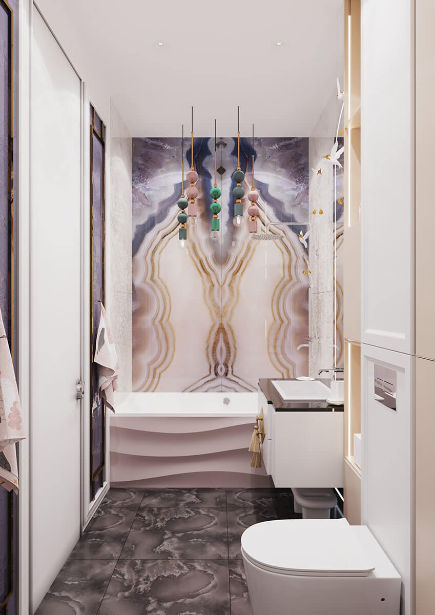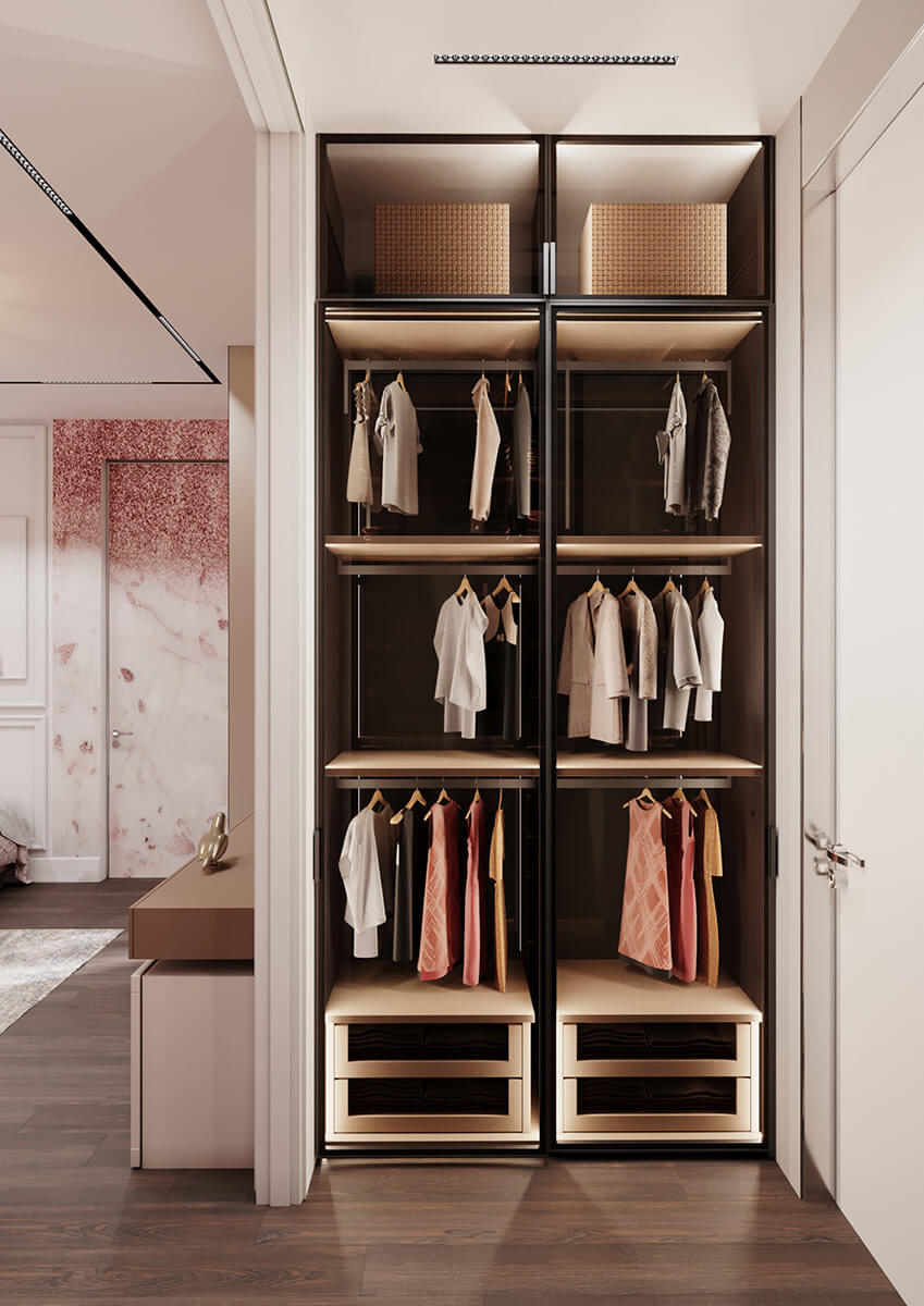 В основе всего интерьера — конструктивные, максимально функциональные решения, немного загадки и много красоты. Преобладают теплые пастельные тона и глубокий зеленый.