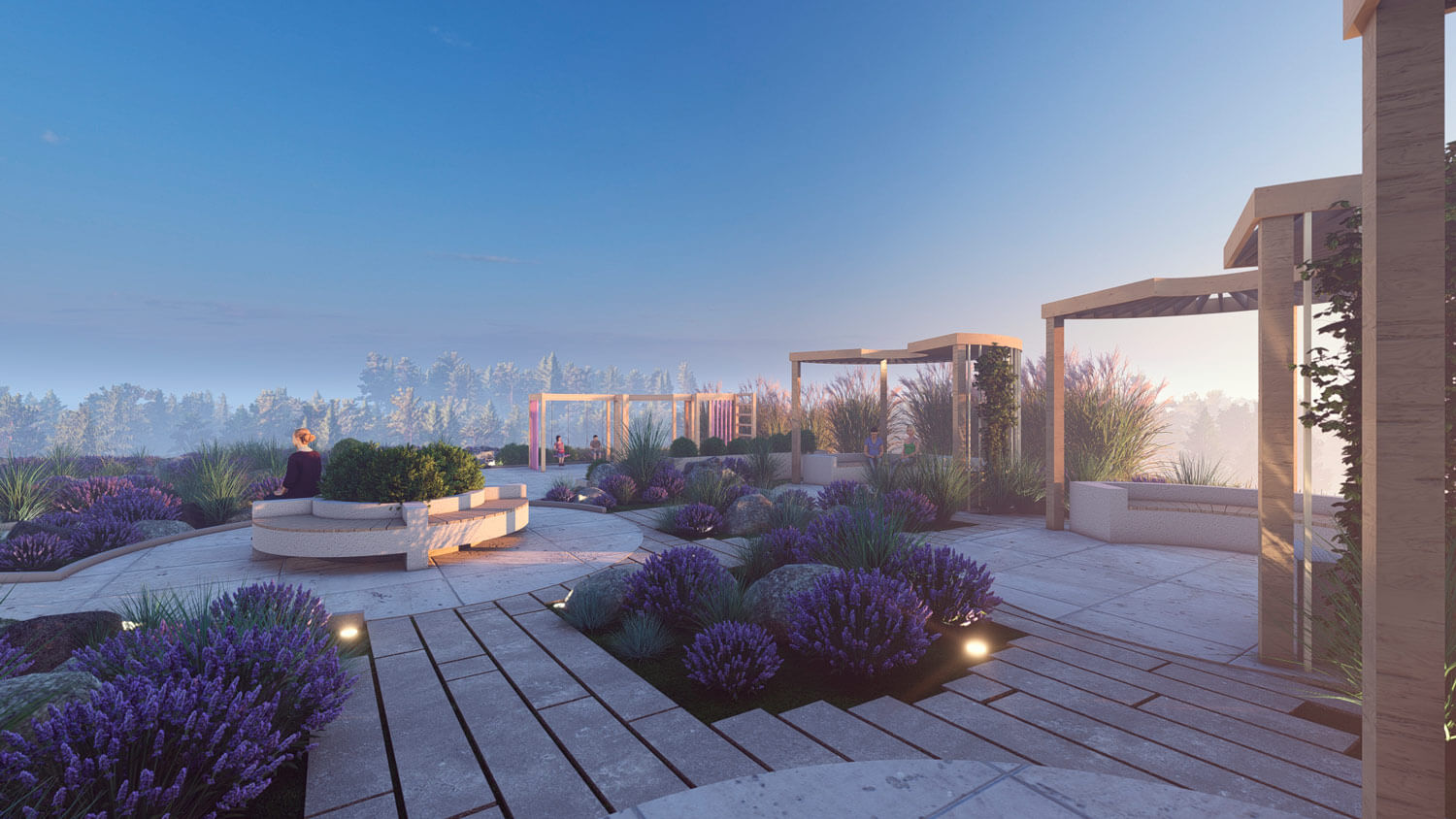 Работа выполнена очень качественно, красиво и самое важное современно. Очень понравилось сочетание натуральных древесных материалов в беседках и акцентные лавандовые посадки.